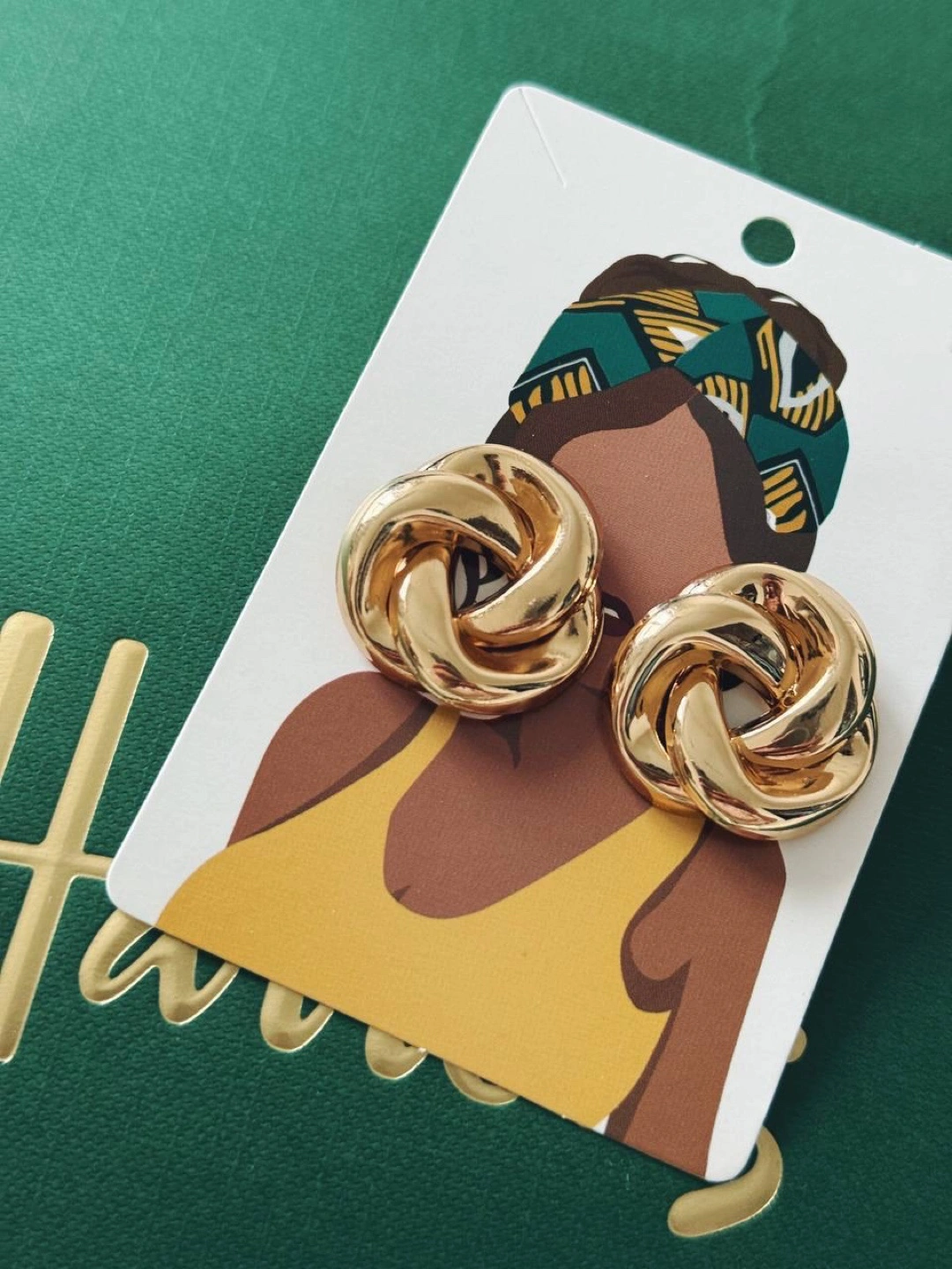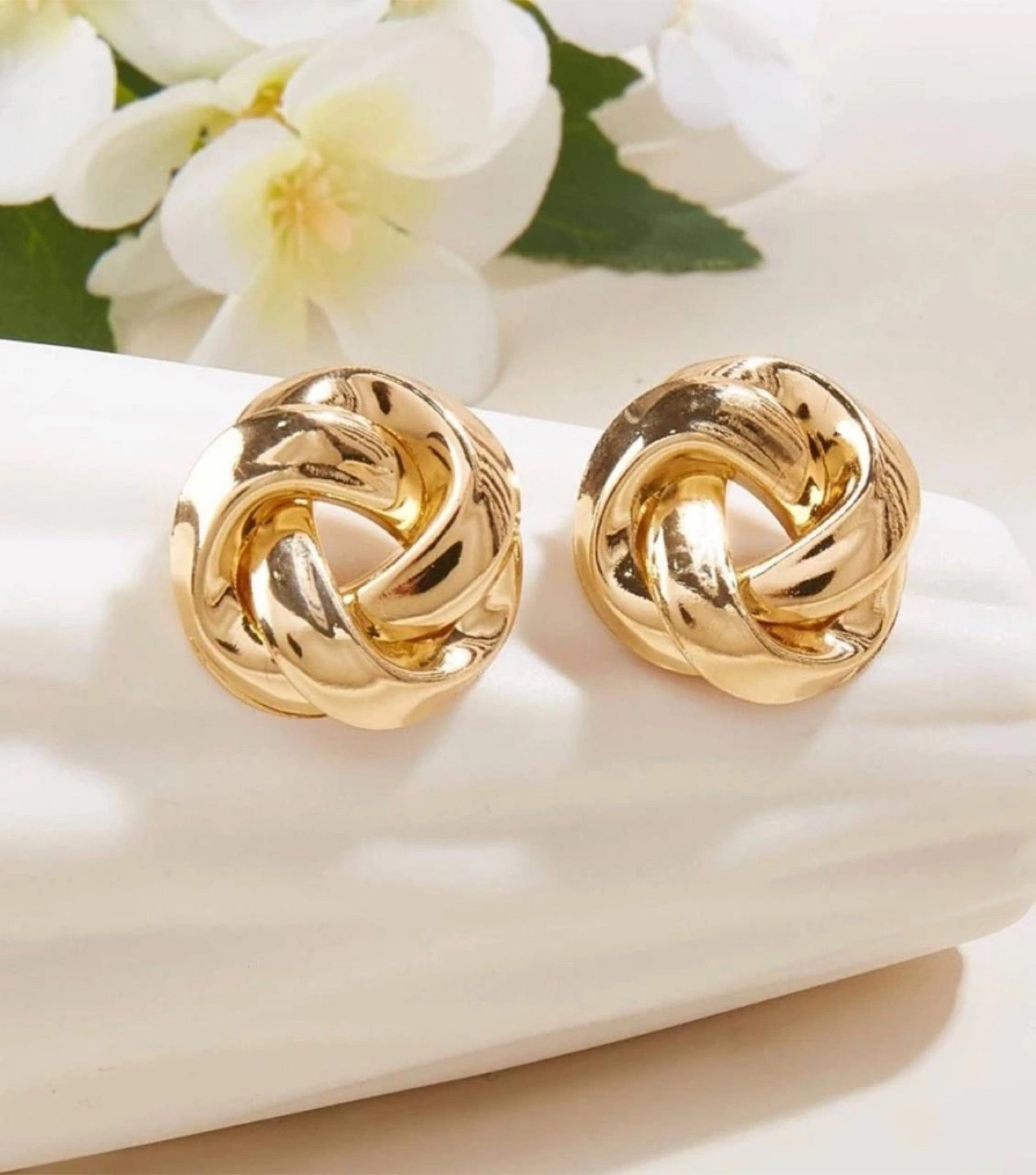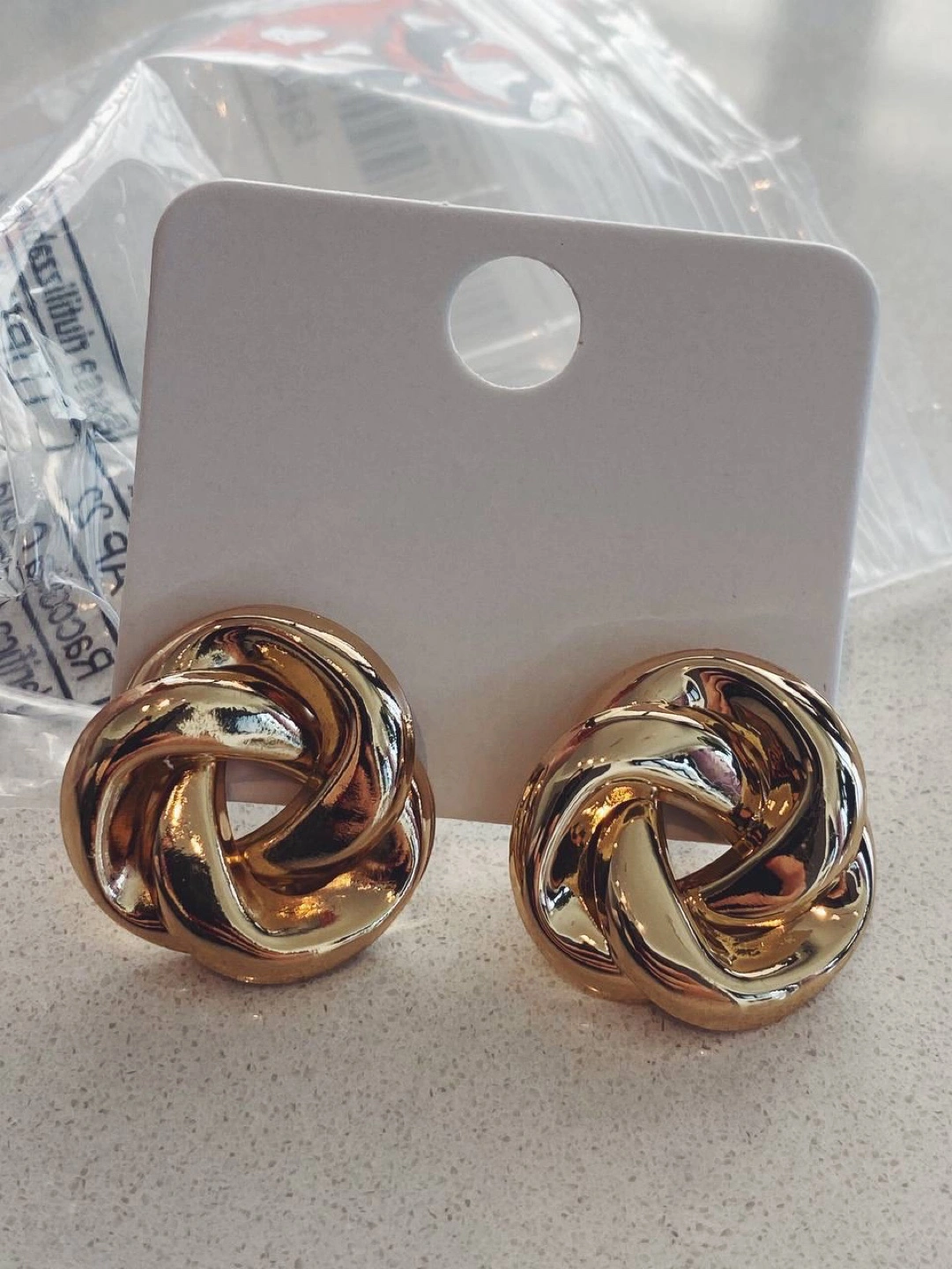 ✨ Decluttering ✨ Affordable prices, quick pick up. 📍 St. George / Sheppard West / Victoria Park ✅Description: New item with no issues Pair of gold knot-design stud earrings. Approximately 2.45cm diameter. Looks great with any outfit.