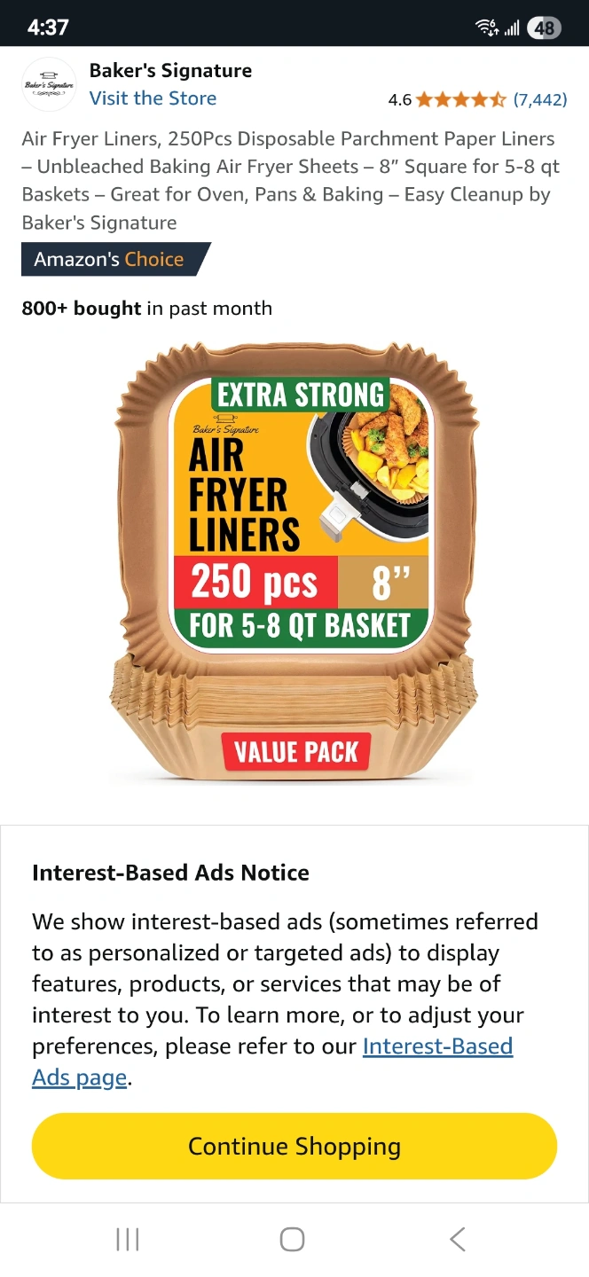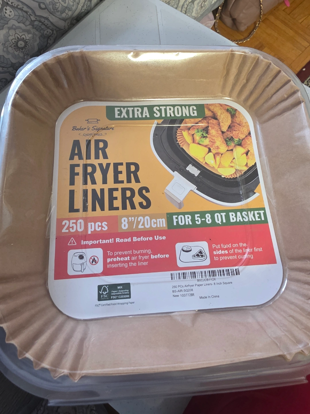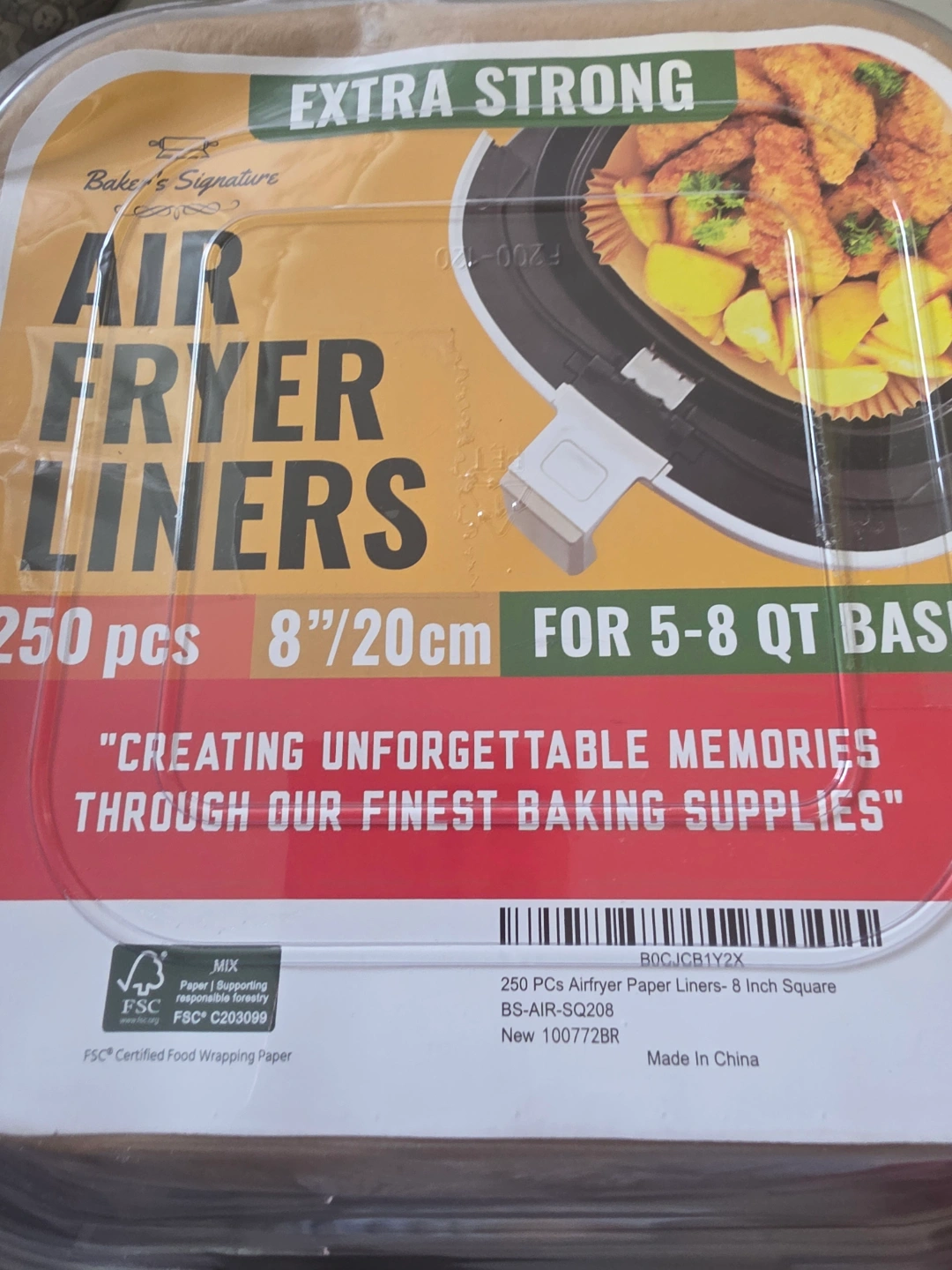 Disposable parchment paper liners. Unbleached baking paper sheets. Great for oven, pans and baking. Easy cleanup. For 5-8 quart air fryer baskets. 8"/20cm. Value pack.