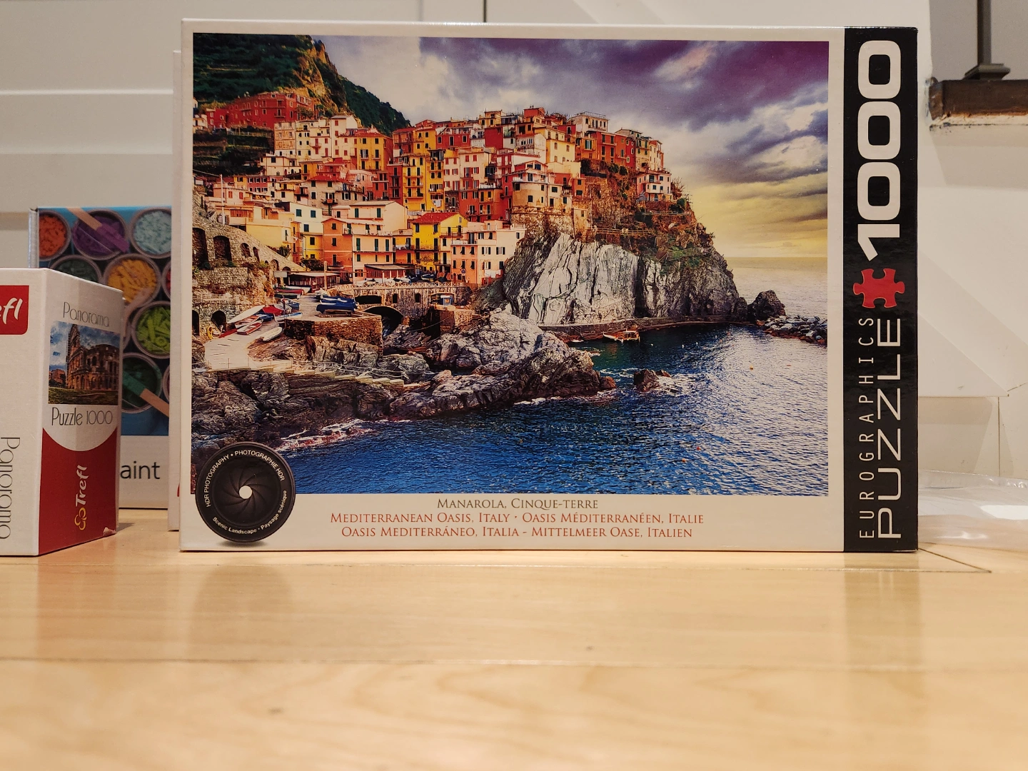 Five 1000-piece jigsaw puzzles. each only assembled once.
