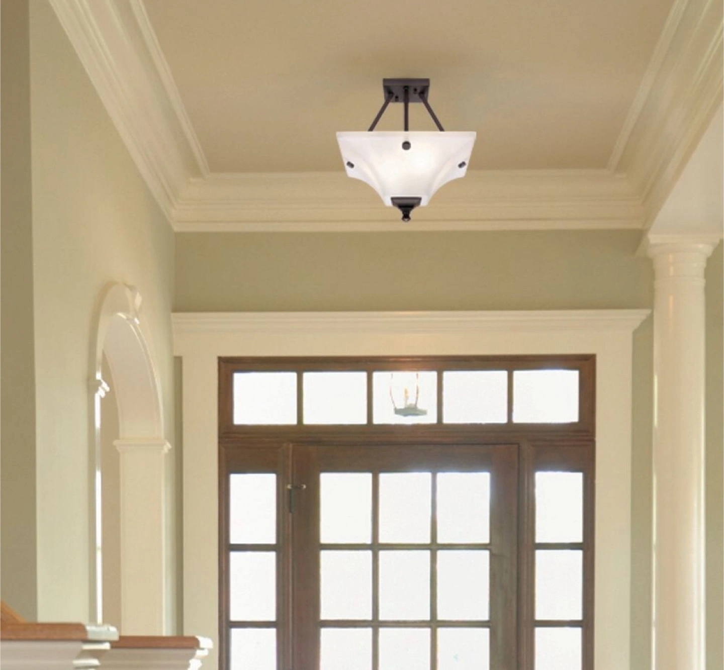 2-Light Semi-Flush-mount in Bronze with Frosted Glass Shade