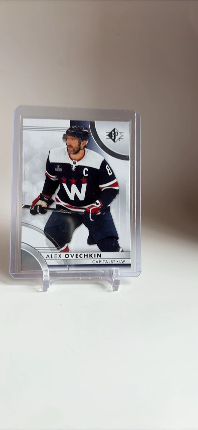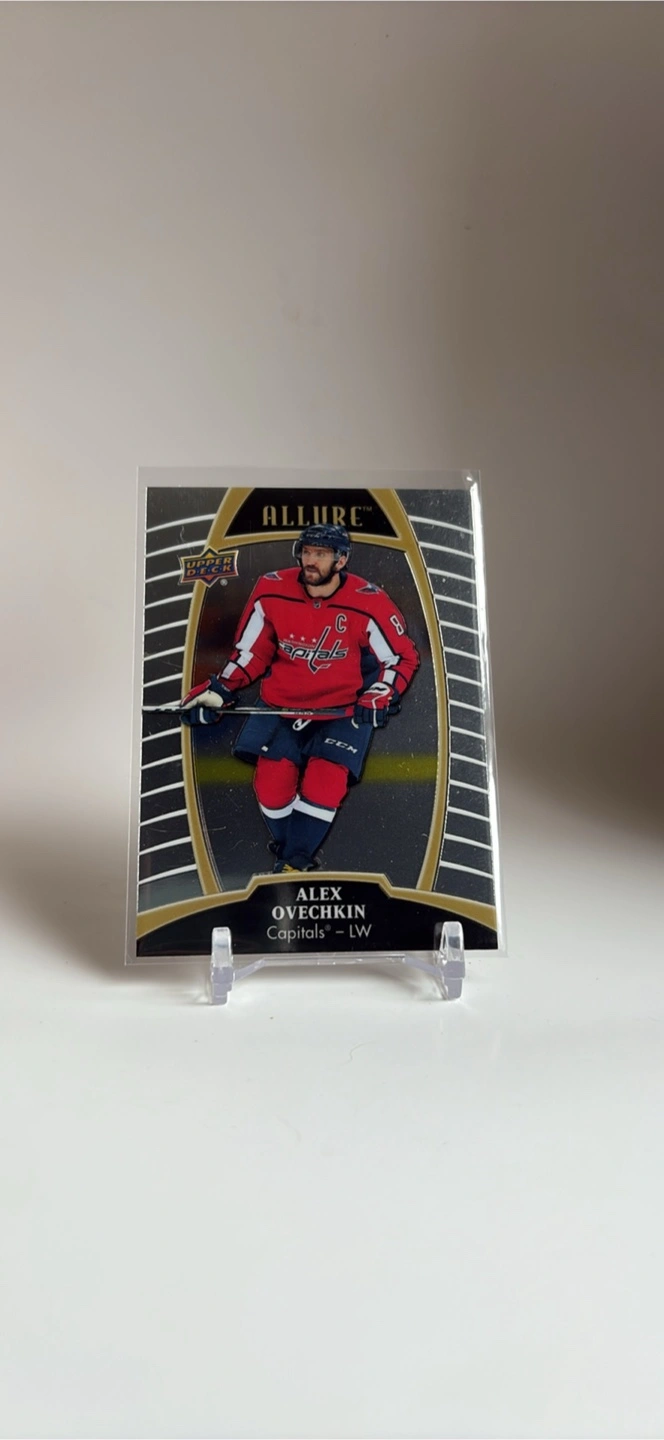 Collection of Alex Ovechkin hockey cards. Various years and designs. Cards in protective cases. Great for collectors.