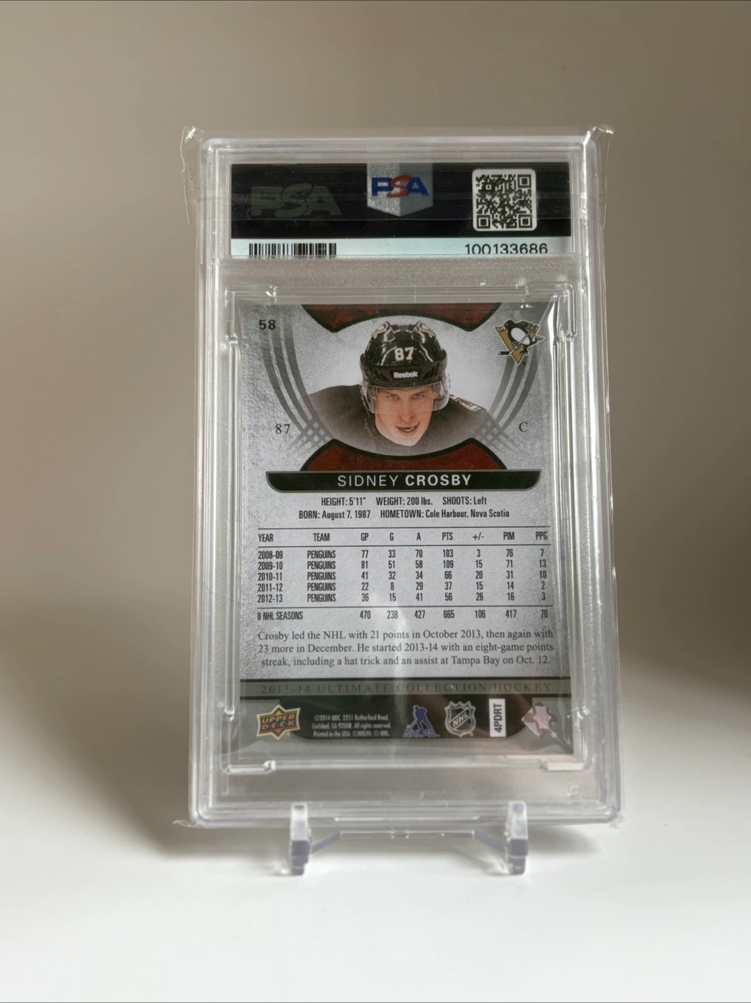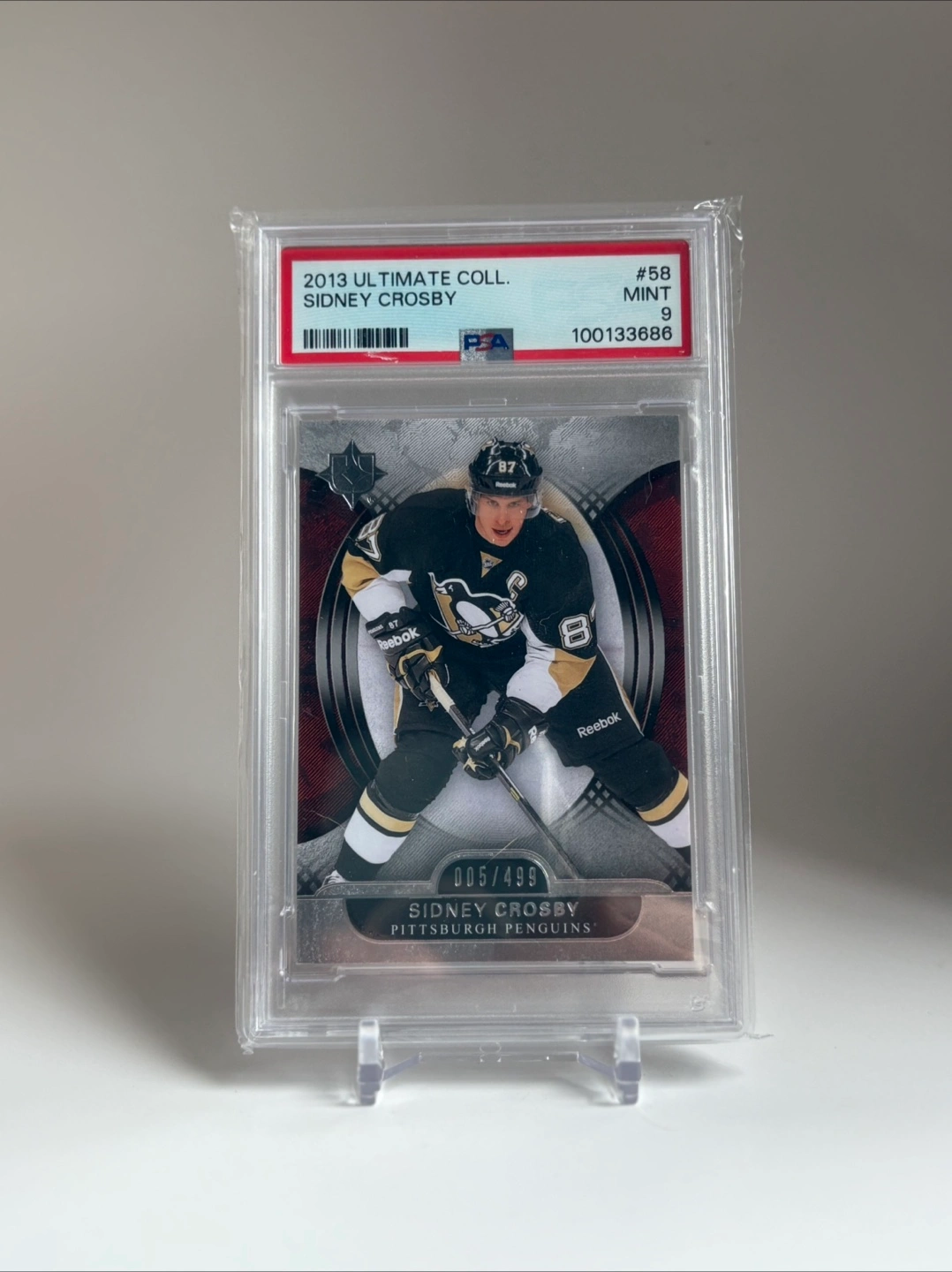Graded PSA 9 Sidney Crosby card. /499. Mint condition. In protective case.