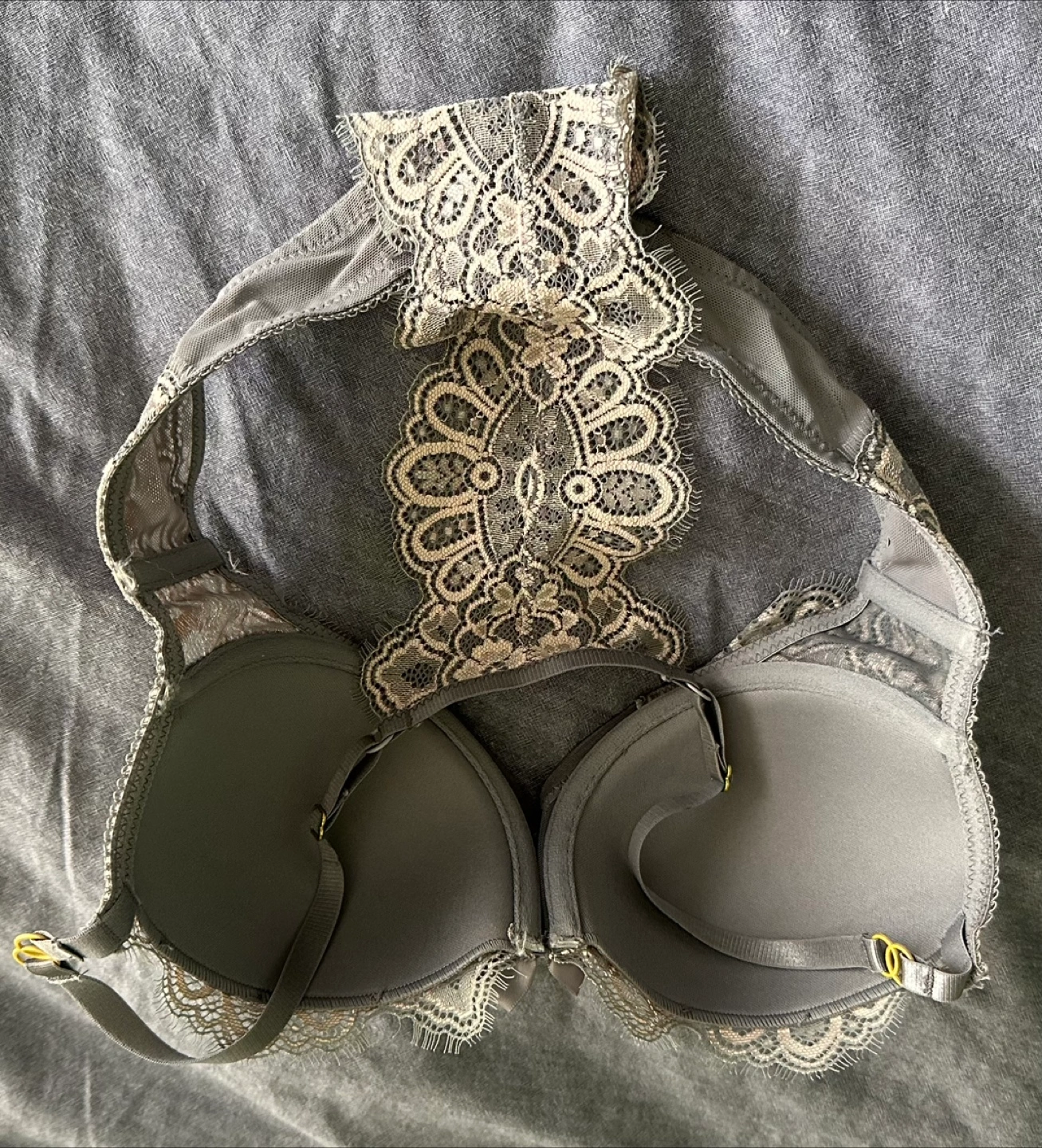 Beautiful grey bra. Features delicate lace detailing. Adjustable straps. Back closure 32C Feel free to check my other postings