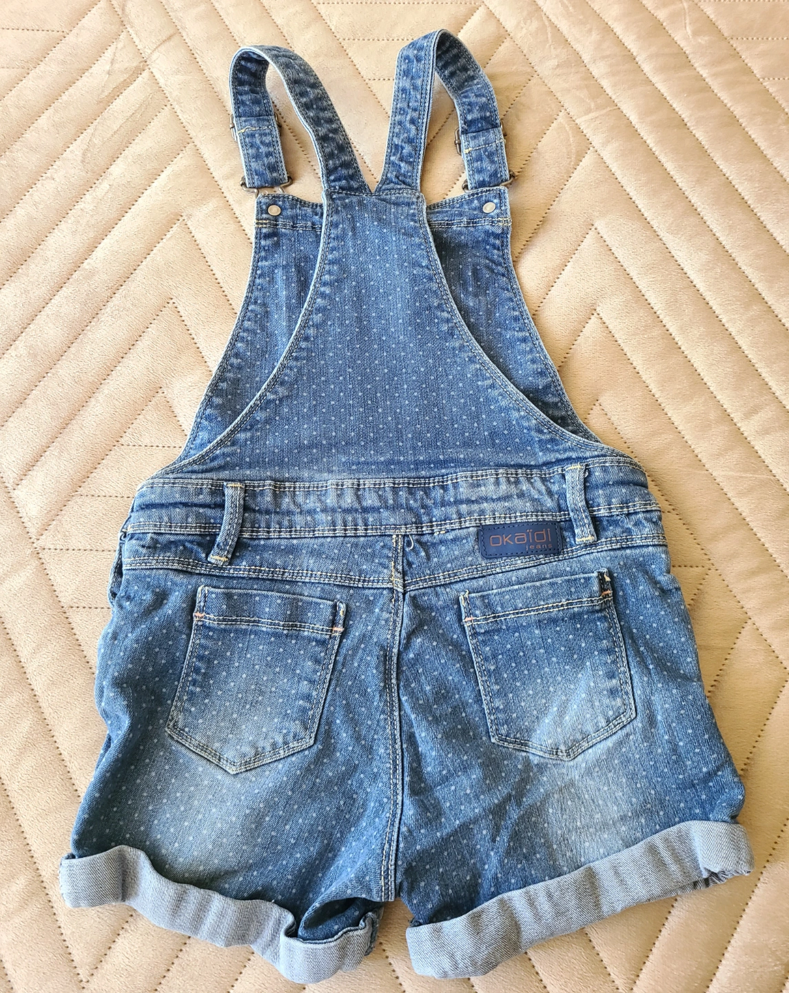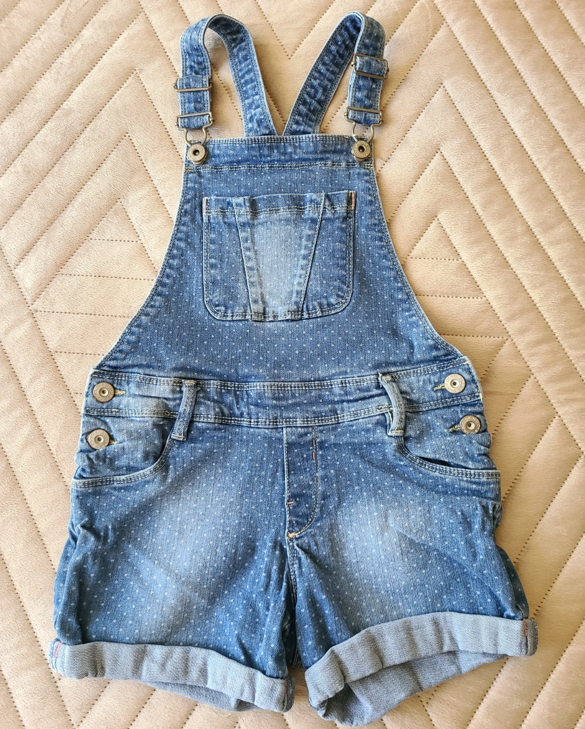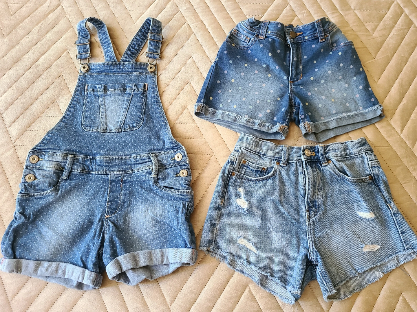 Three-piece bundle. Includes: - OKAÏDI denim overalls with polka dots, Size 8y - $10 - Polka dot denim shorts, Size 10y -$5 - Zara denim shorts, Size 9y -$10 $20 for all