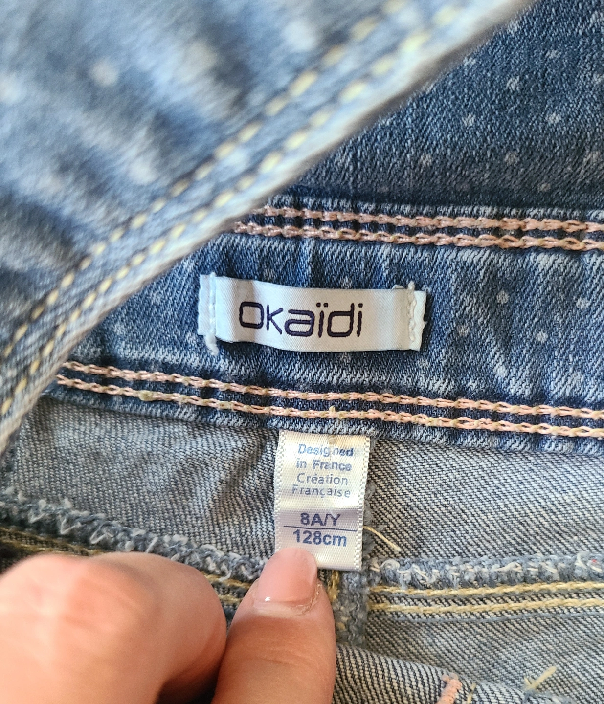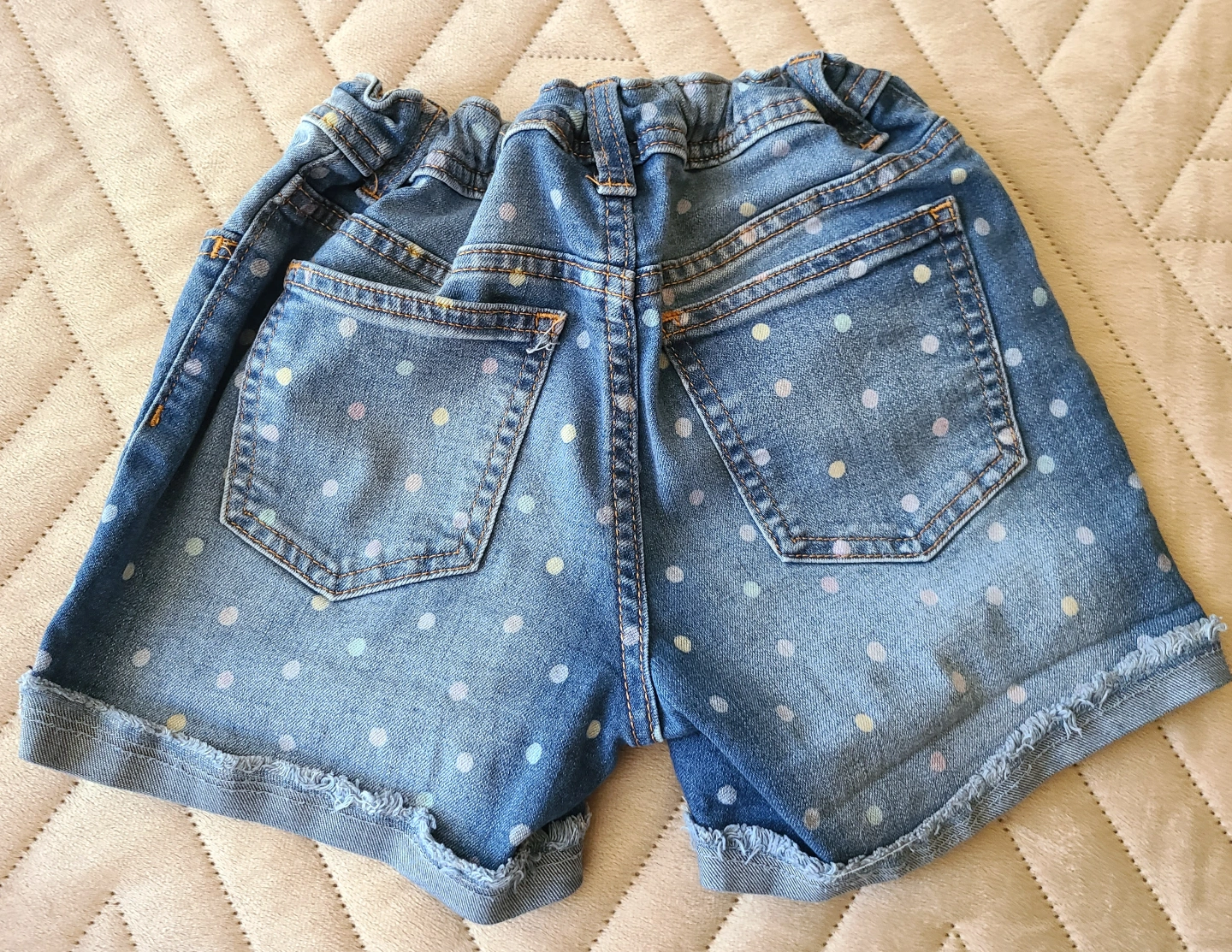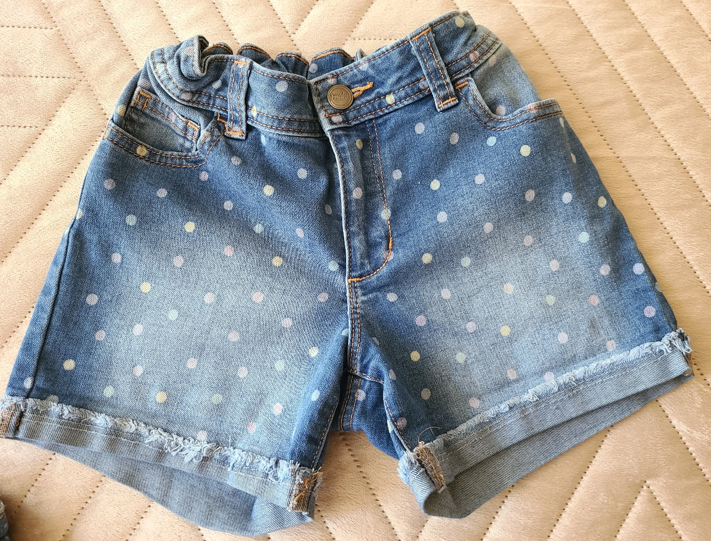 Three-piece bundle. Includes: - OKAÏDI denim overalls with polka dots, Size 8y - $10 - Polka dot denim shorts, Size 10y -$5 - Zara denim shorts, Size 9y -$10 $20 for all