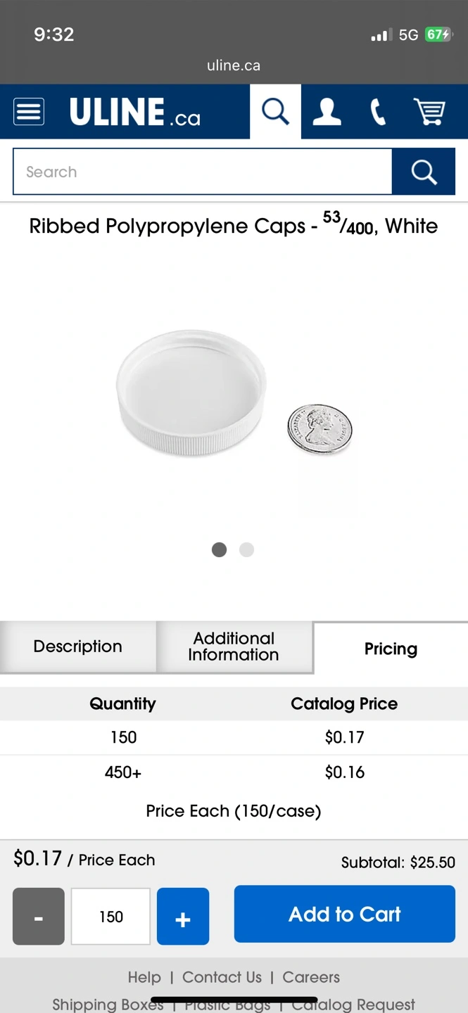 π Pick up at 200 Wellesley St E Two cases of BRAND NEW Uline white polypropylene caps. 616 lids per box (2 boxes available). Retails for $200. I will accept best offer. β’ Ribbed design β’ Compatible with 53/400 thread, 1oz or 2oz containers (glass or plastic) β’ Inside foam liner β’ FDA compliant β’ Outside diameter 2 1/8β β’ Height 1/2β https://www.uline.ca/Product/Detail/S-18068/Replacement-Caps/Ribbed-Polypropylene-Caps-53-400-White CHECK MY OTHER ADS