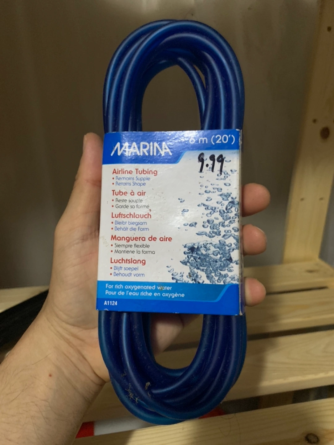 Blue airline tubing. Remains supple and retains shape. For rich oxygenated water. New in package.