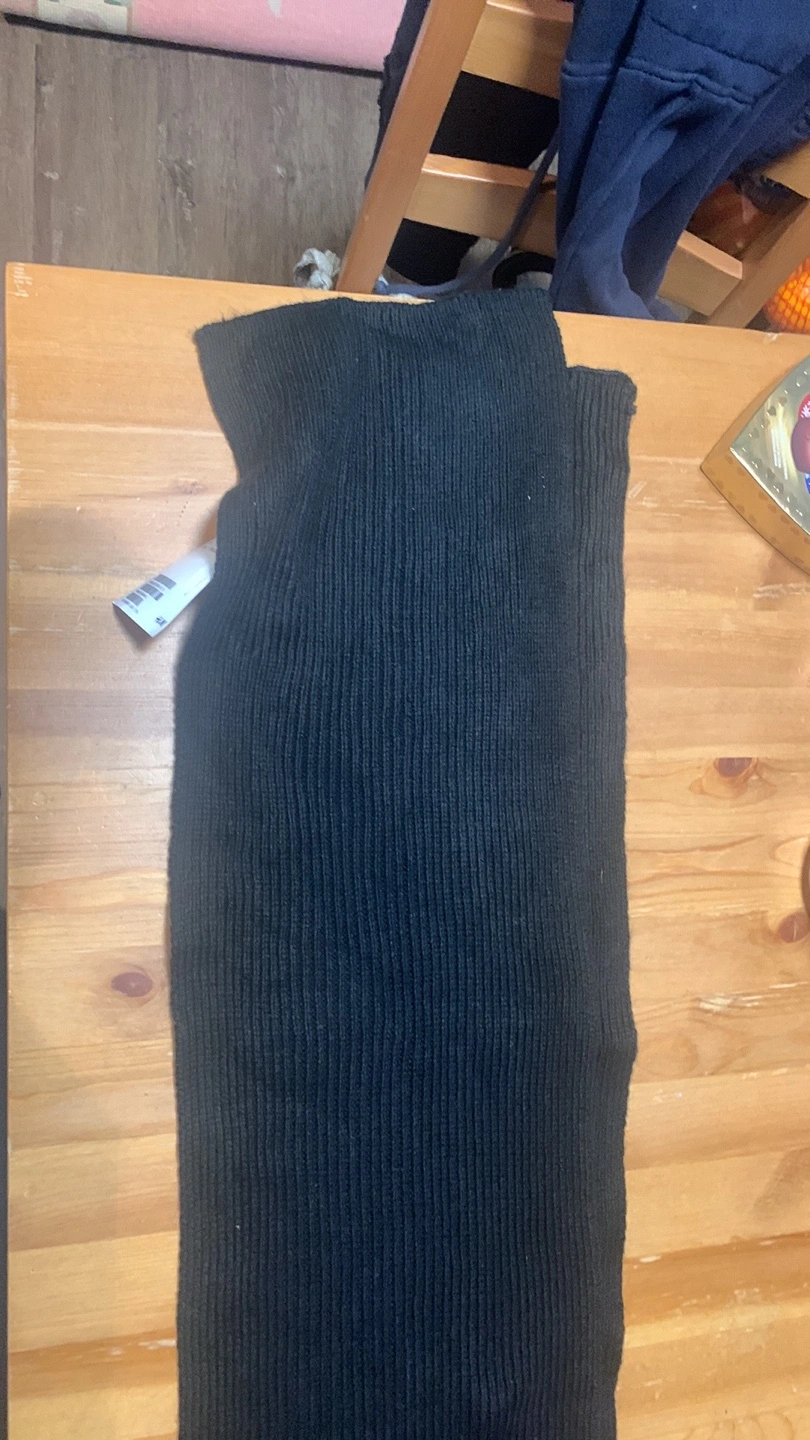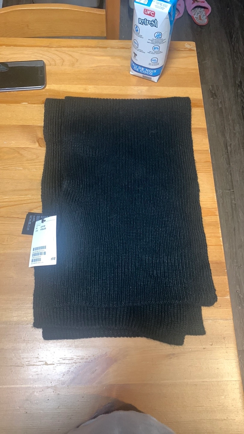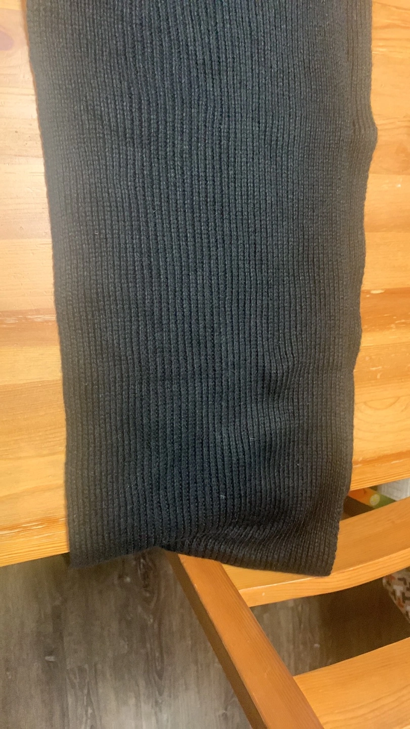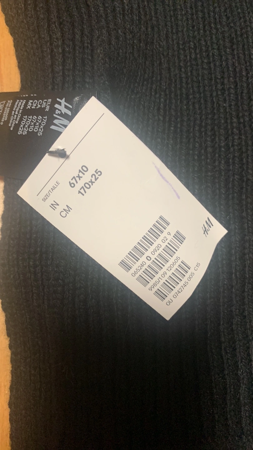 Long black knitted scarf. Ribbed texture. New with tags. Measurements on tag: 67x10 cm or 26x4 inches.