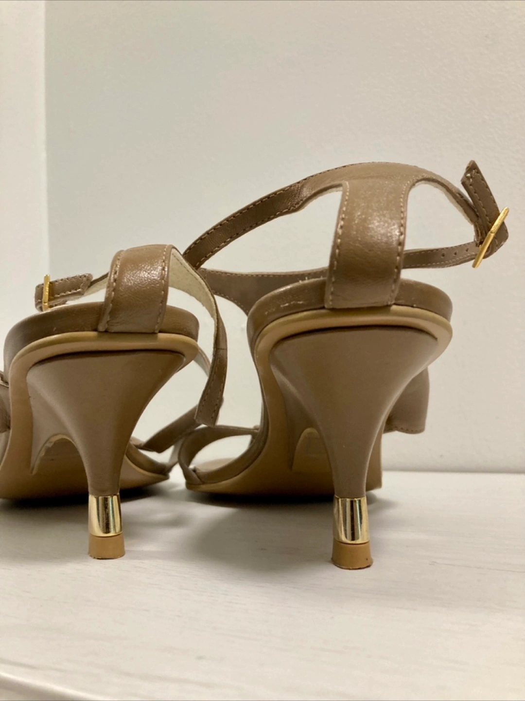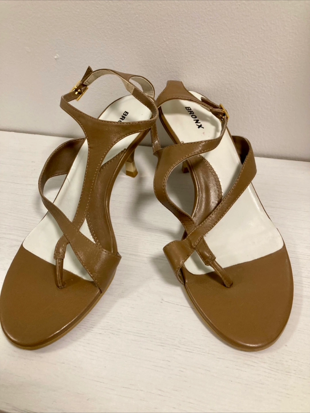 EUC brown leather sandals. Only worn twice for events. T-bar style with ankle straps and gold details on heel. Purchased in Dublin for $60. Size 37 (7-7.5). SFPF home. Pick up available some daytimes from University and Dundas, otherwise Kingston Road and Dundas Street east.