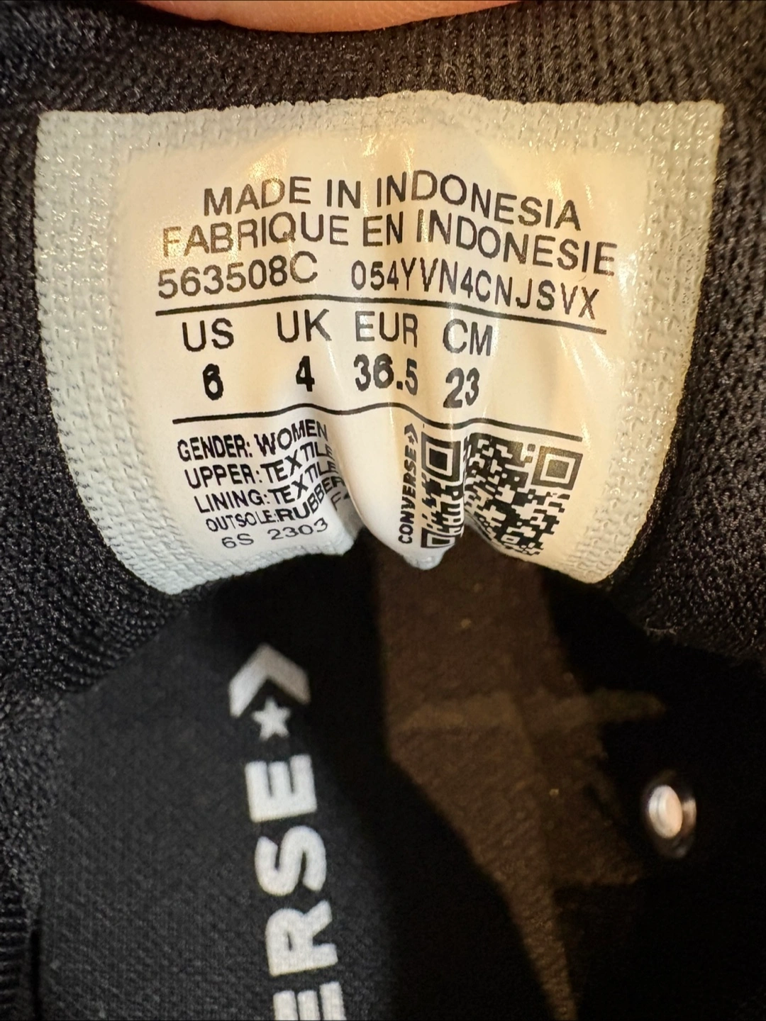 Women's black canvas low-top Converse sneakers - padded design. Size 6 in excellent condition. Retails for $75 + tax