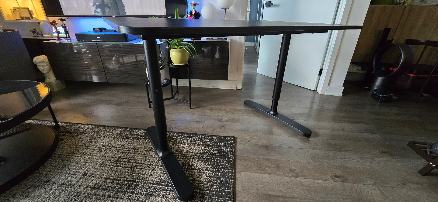 PICK UP DUNDAS AND REGENT PARK BLVD Black IKEA BEKANT standing desk. Adjustable height. Includes under-desk storage net. Good condition. Minimal wear. Measurements are in pics