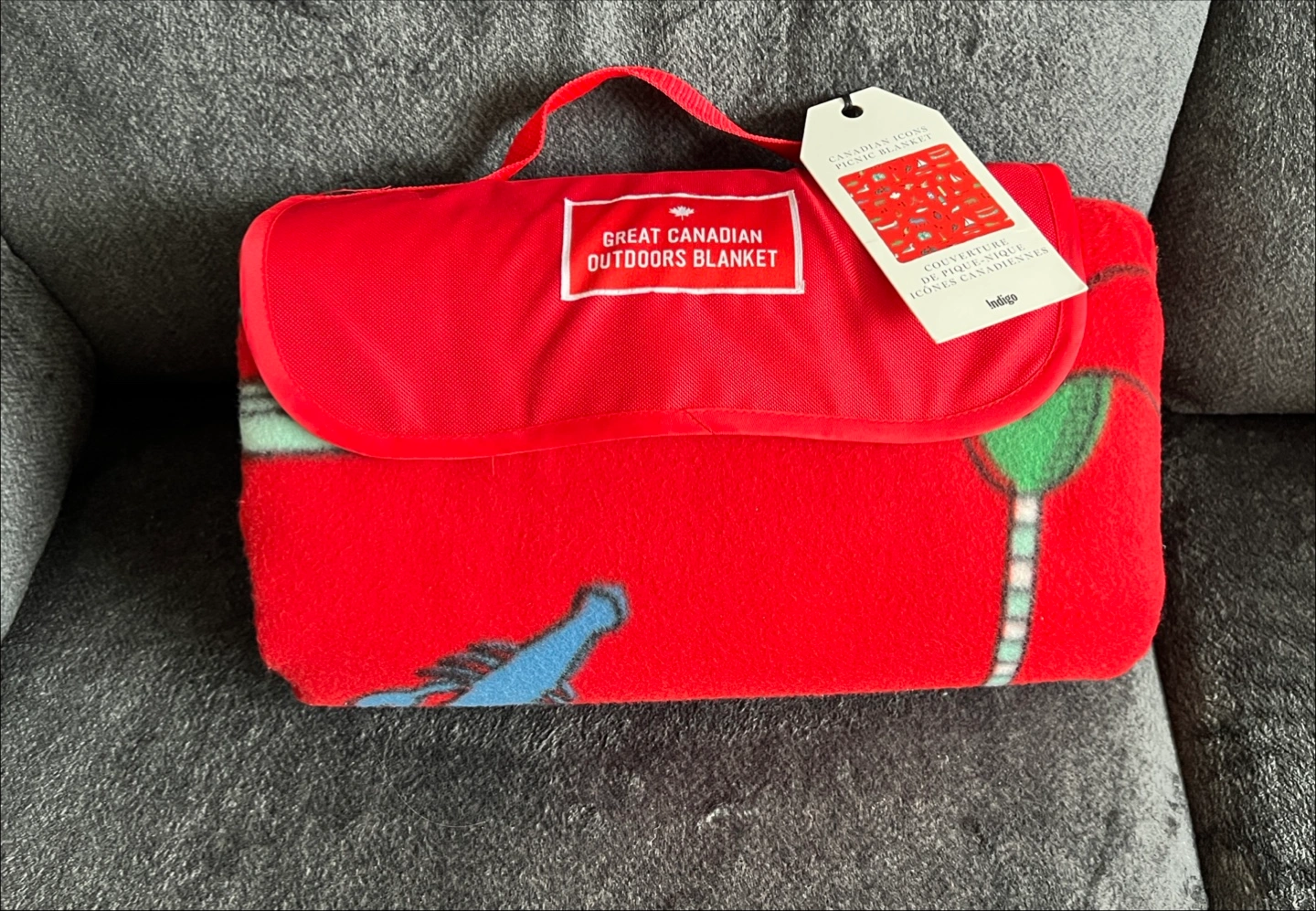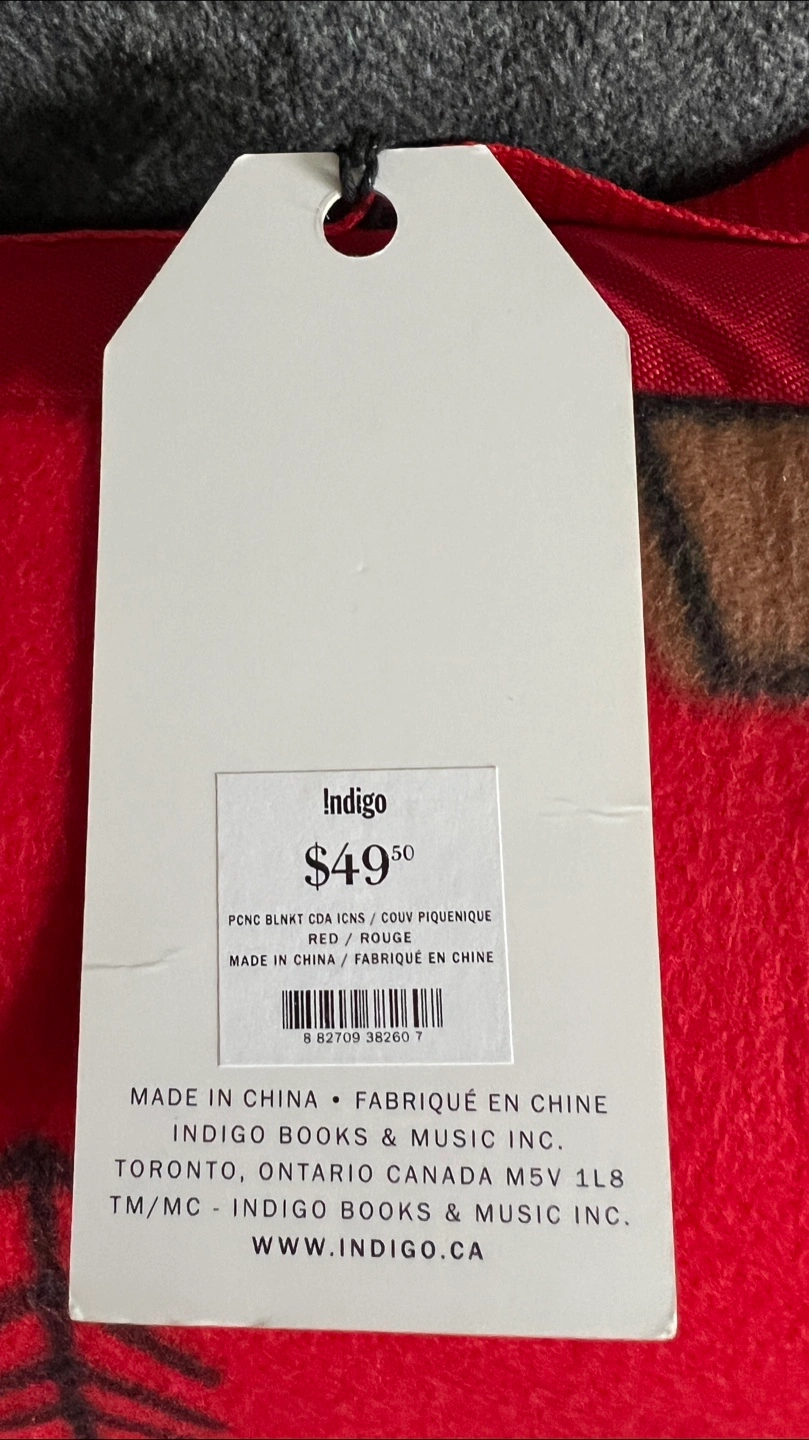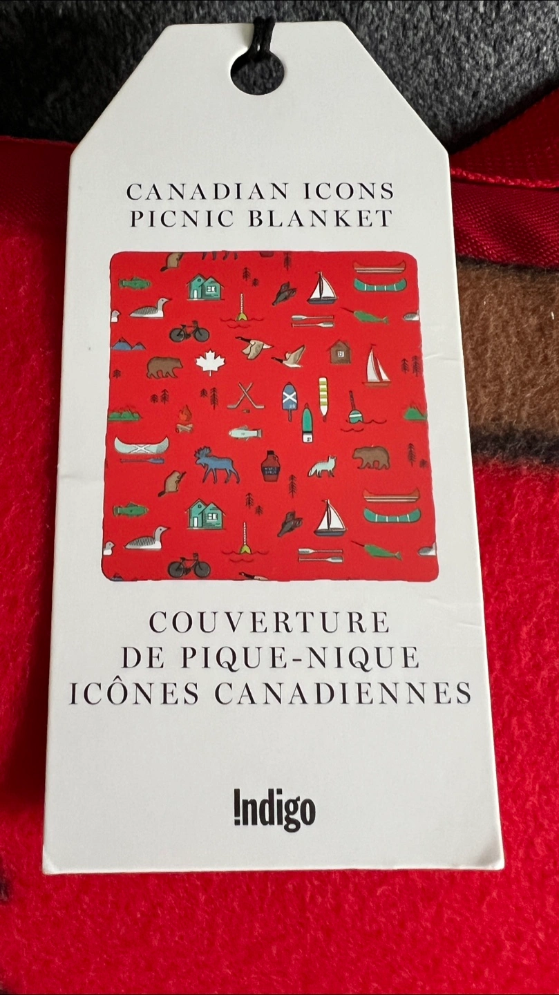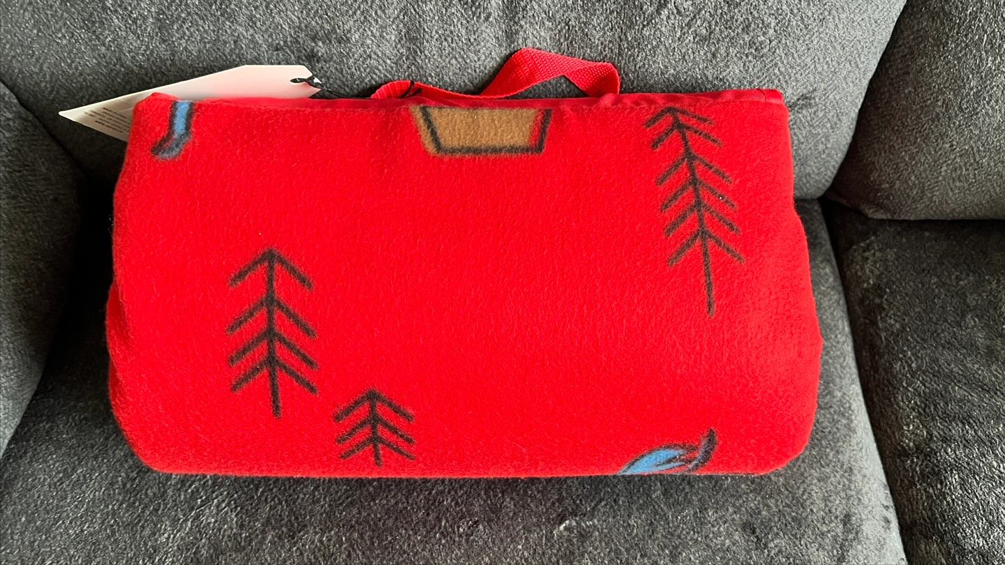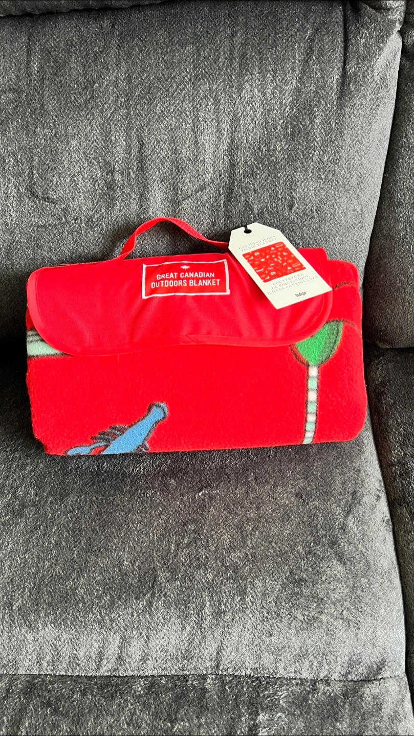 New with tags. Red fleece picnic blanket. Waterproof / sand proof lining. Features Canadian icons. Compact design with carrying strap. Perfect for outdoor adventures. From a smoke/pet free home Pickup North Oshawa - Windfields