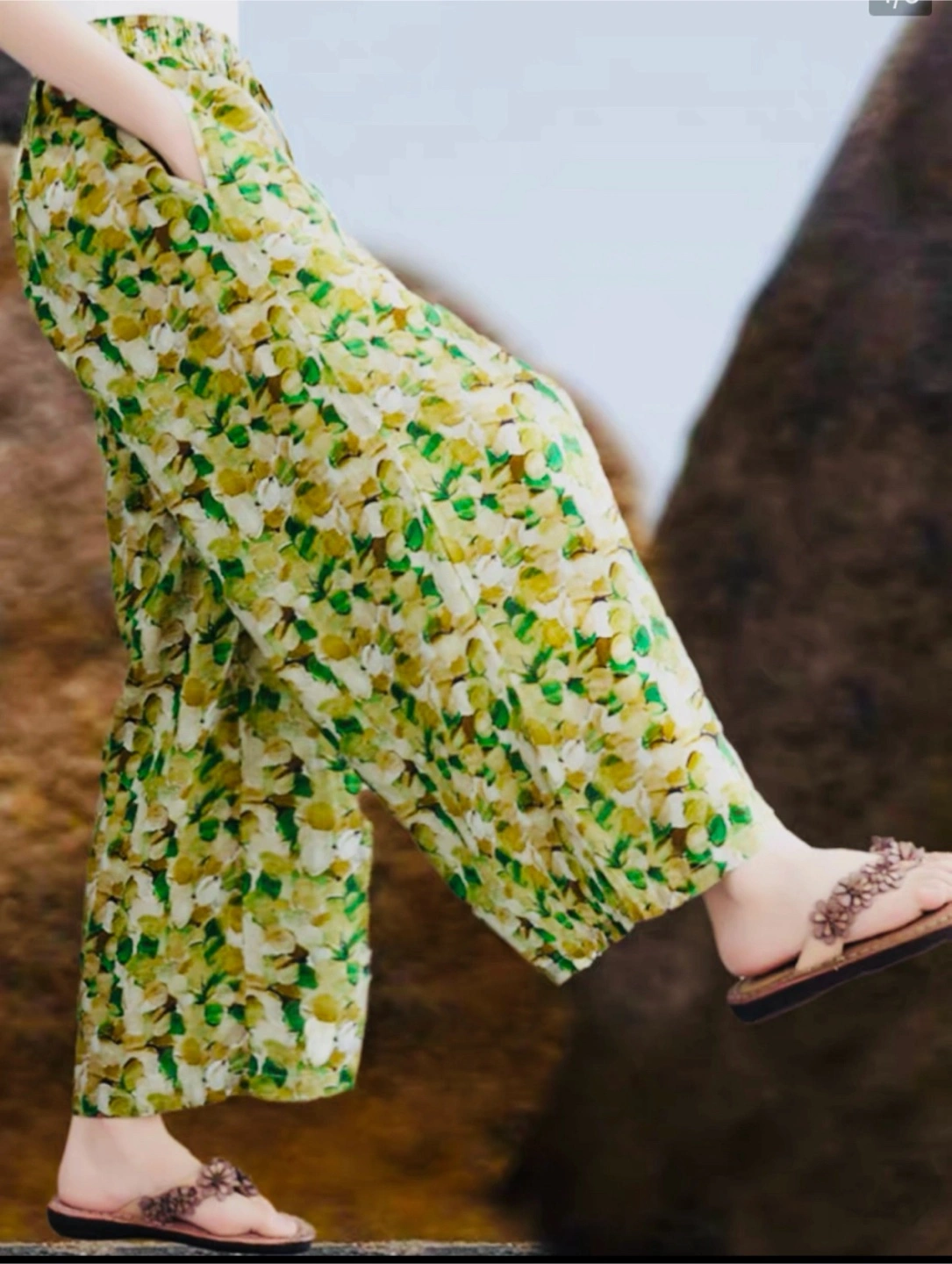 Wide leg pants, elastic waistband, drawstring, pockets, floral print, lightweight fabric. Perfect for spring and summer.🥰🥰