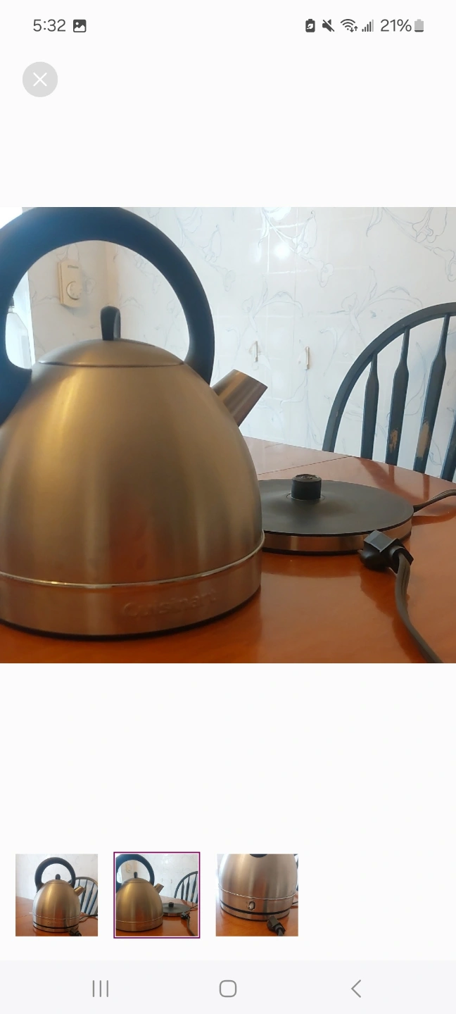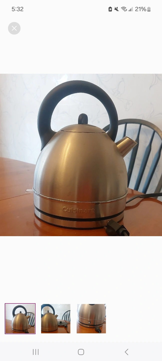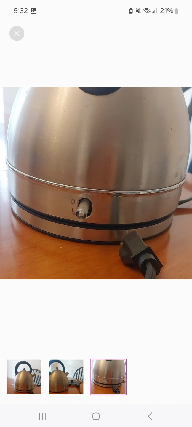 Cordless kettle, stainless steel finish. Great for quick boiling water. Used but in good condition.