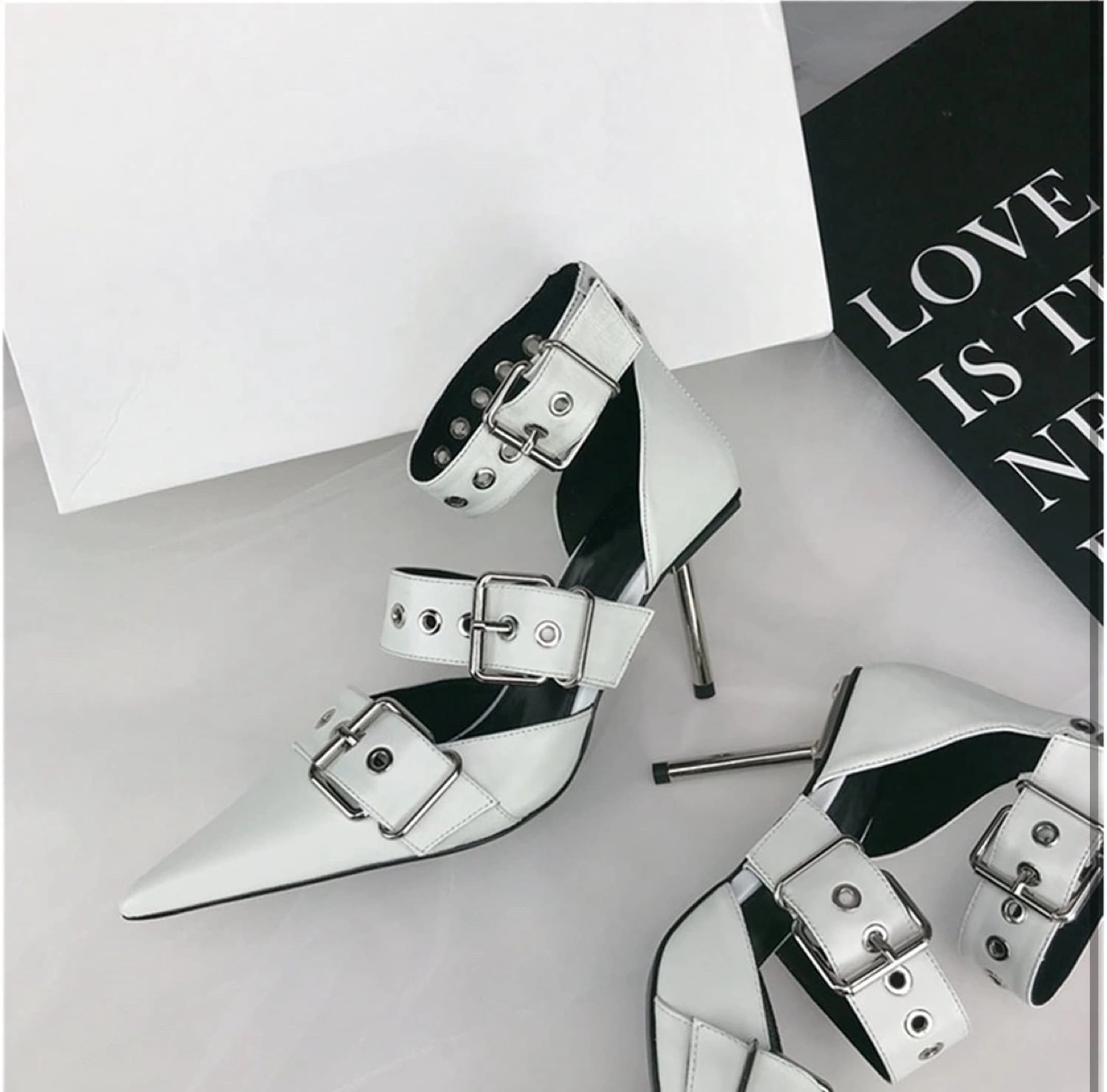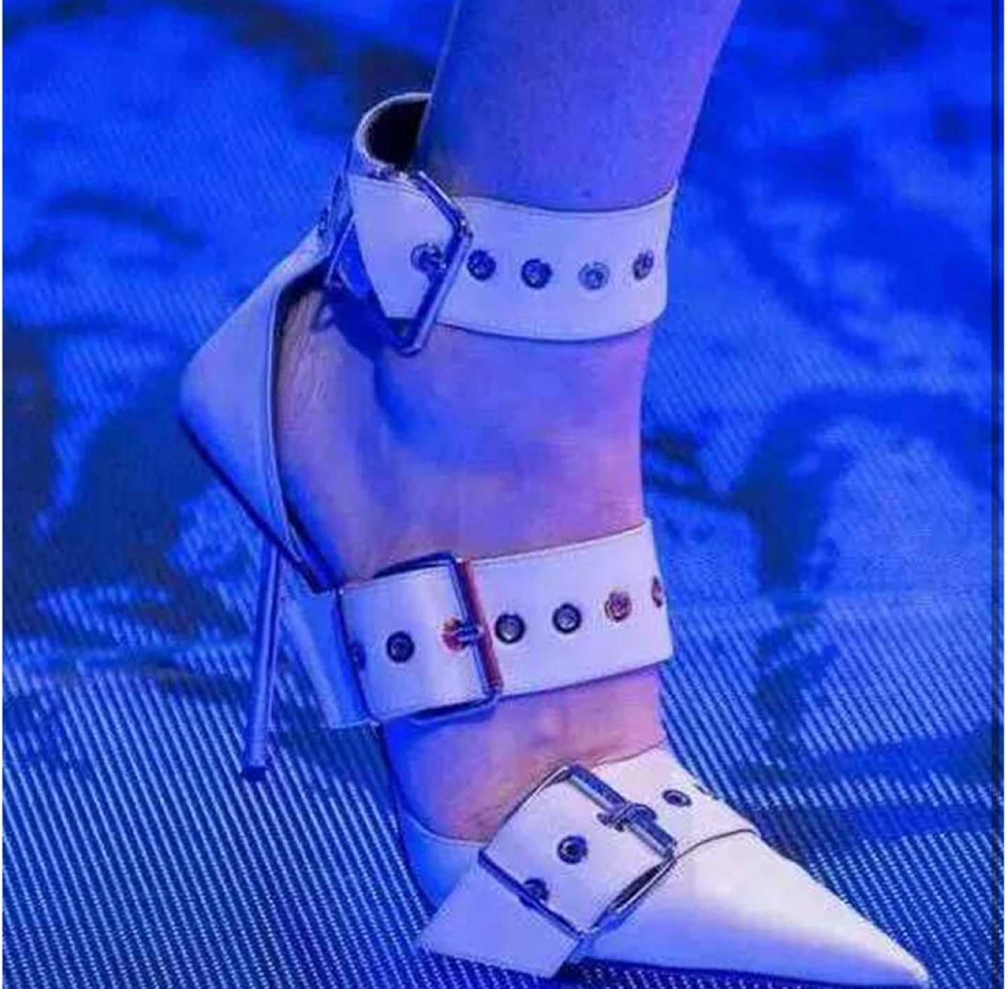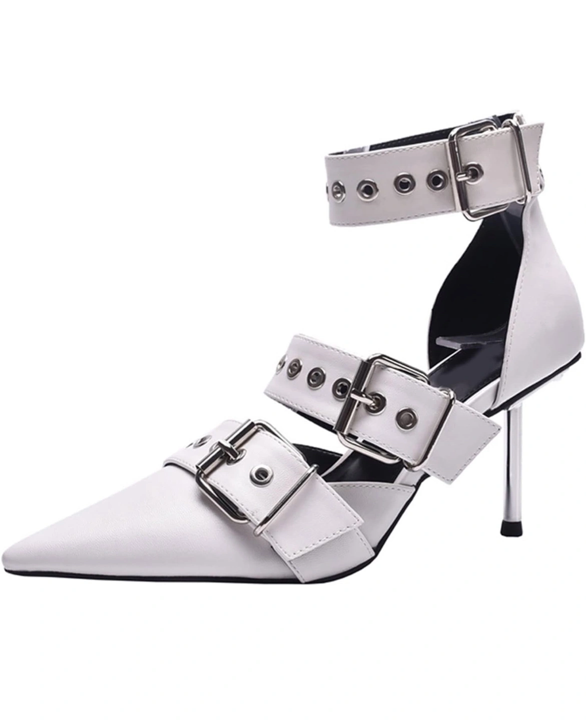 New! Women's white leather-look stiletto heels. Features multiple buckles and ankle strap. Pointed toe. Stylish and elegant. Size 6.5 Heel height: 2.0" High quality synthetic faux leather. Nonslip and wearable rubber outsole. Comfortable inside, abrasion-resistant and durable, breathable and lightweight. Pointed toe kitten heels is easy to support a long time wear and the plus size for more choices. The mid heel pumps with ankle strap and buckle is easy to wear or take off and the multiple strappy design make the shoes more stylish. This classic low heel heeled shoes will high light your dress, wedding, daily or office wear and the size is regular.