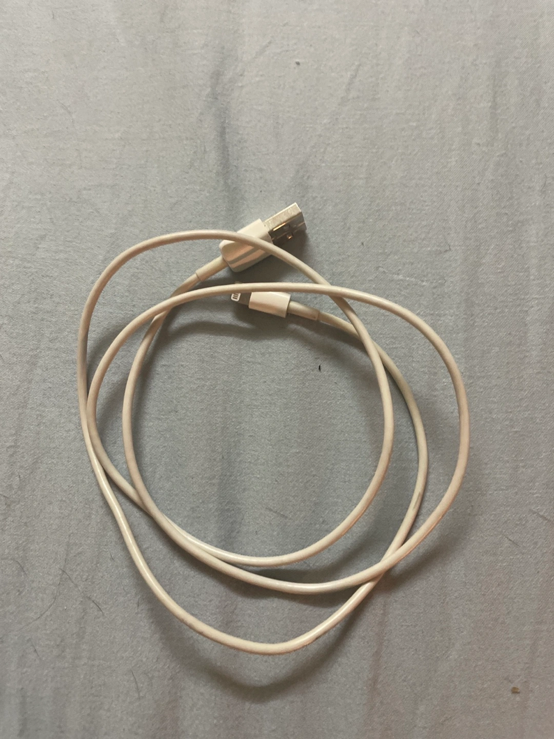 Off-white Apple Lightning to USB cable. Used condition. Amazon Basics