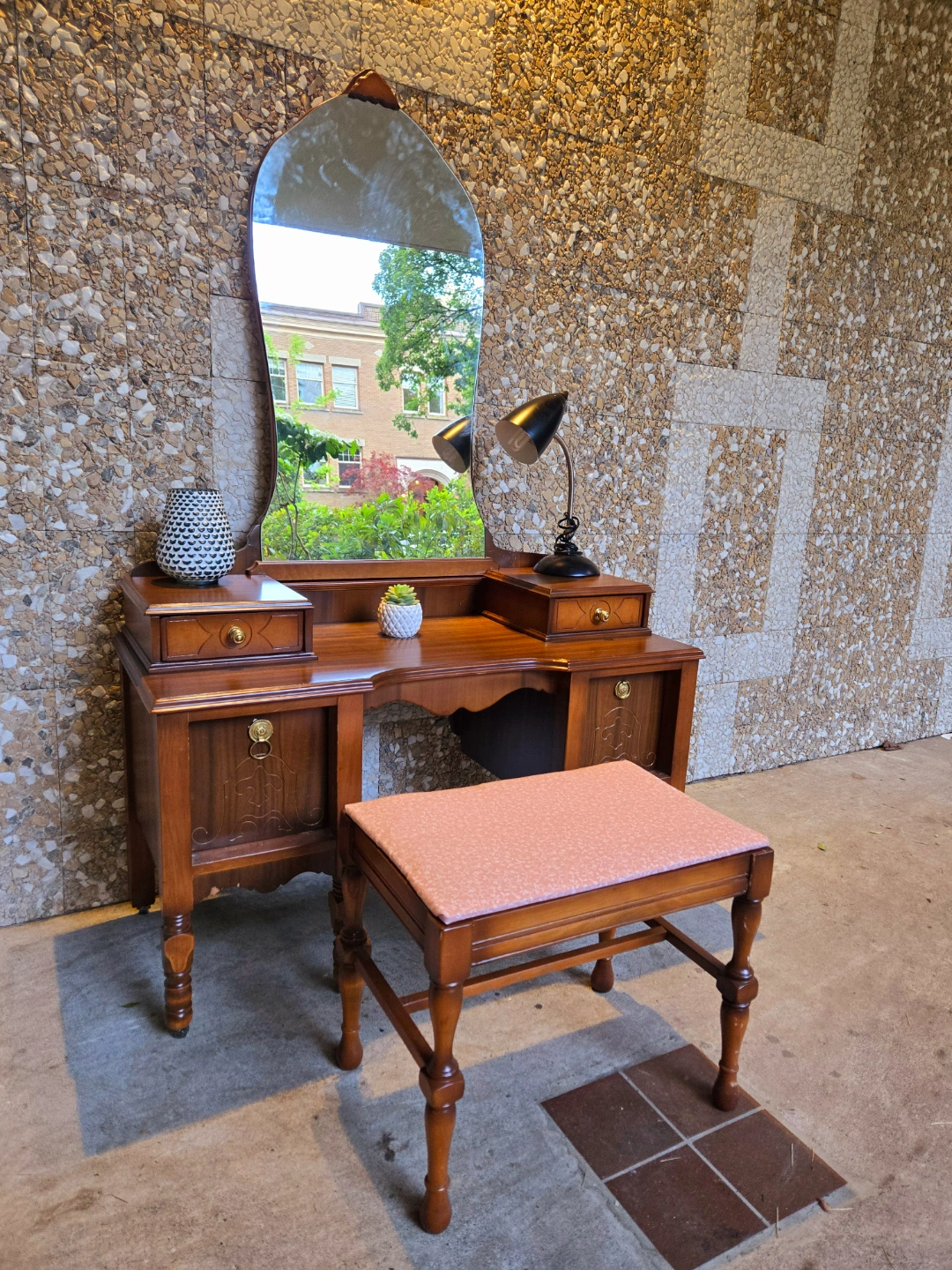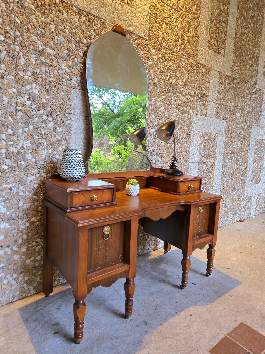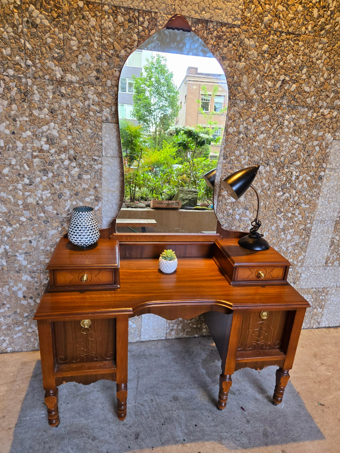 Antique Walnut Vanity Desk With Mirror On Caster Wheels (Delivery Available) Excellent condition 42 inch width 18 inch depth 28 inch height Opening 16 inch width 20 inch height Pick up in downtown Vancouver or delivery may be arranged for a reasonable fee. Follow us on Instagram: https://www.instagram.com/west.end.trends/ Tags: modern Contemporary sideboard credenza server buffet tv bench media stand entertainment unit living room white wood oak beech teak walnut mcm mid century modern furniture cb2 eq3 west elm pottery barn crate and barrel structube article urban barn moes Scandesign rove concept westendtrends furniture