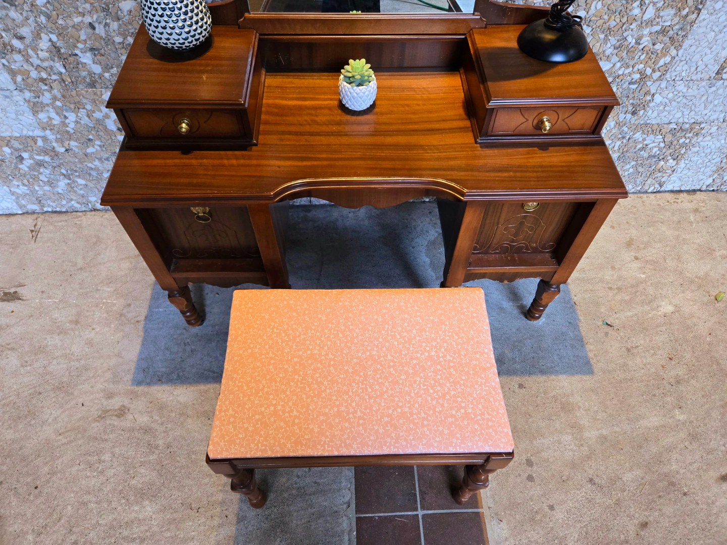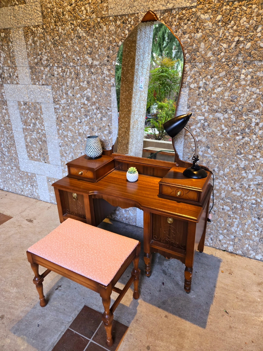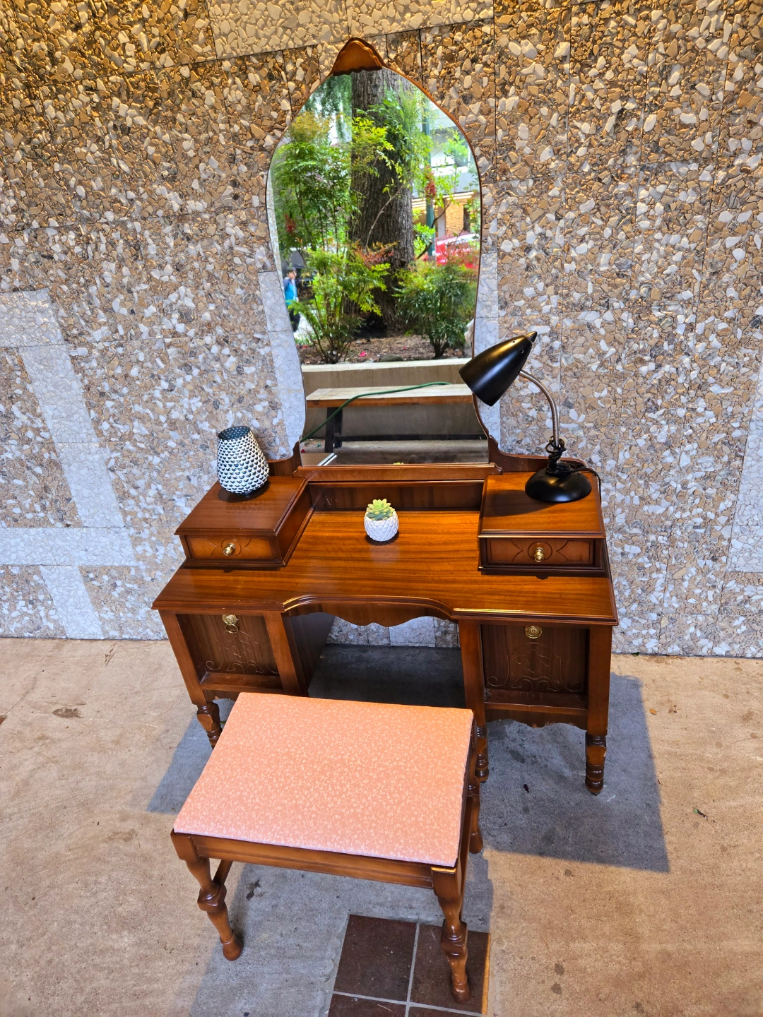 Antique Walnut Vanity Desk With Mirror On Caster Wheels (Delivery Available) Excellent condition 42 inch width 18 inch depth 28 inch height Opening 16 inch width 20 inch height Pick up in downtown Vancouver or delivery may be arranged for a reasonable fee. Follow us on Instagram: https://www.instagram.com/west.end.trends/ Tags: modern Contemporary sideboard credenza server buffet tv bench media stand entertainment unit living room white wood oak beech teak walnut mcm mid century modern furniture cb2 eq3 west elm pottery barn crate and barrel structube article urban barn moes Scandesign rove concept westendtrends furniture