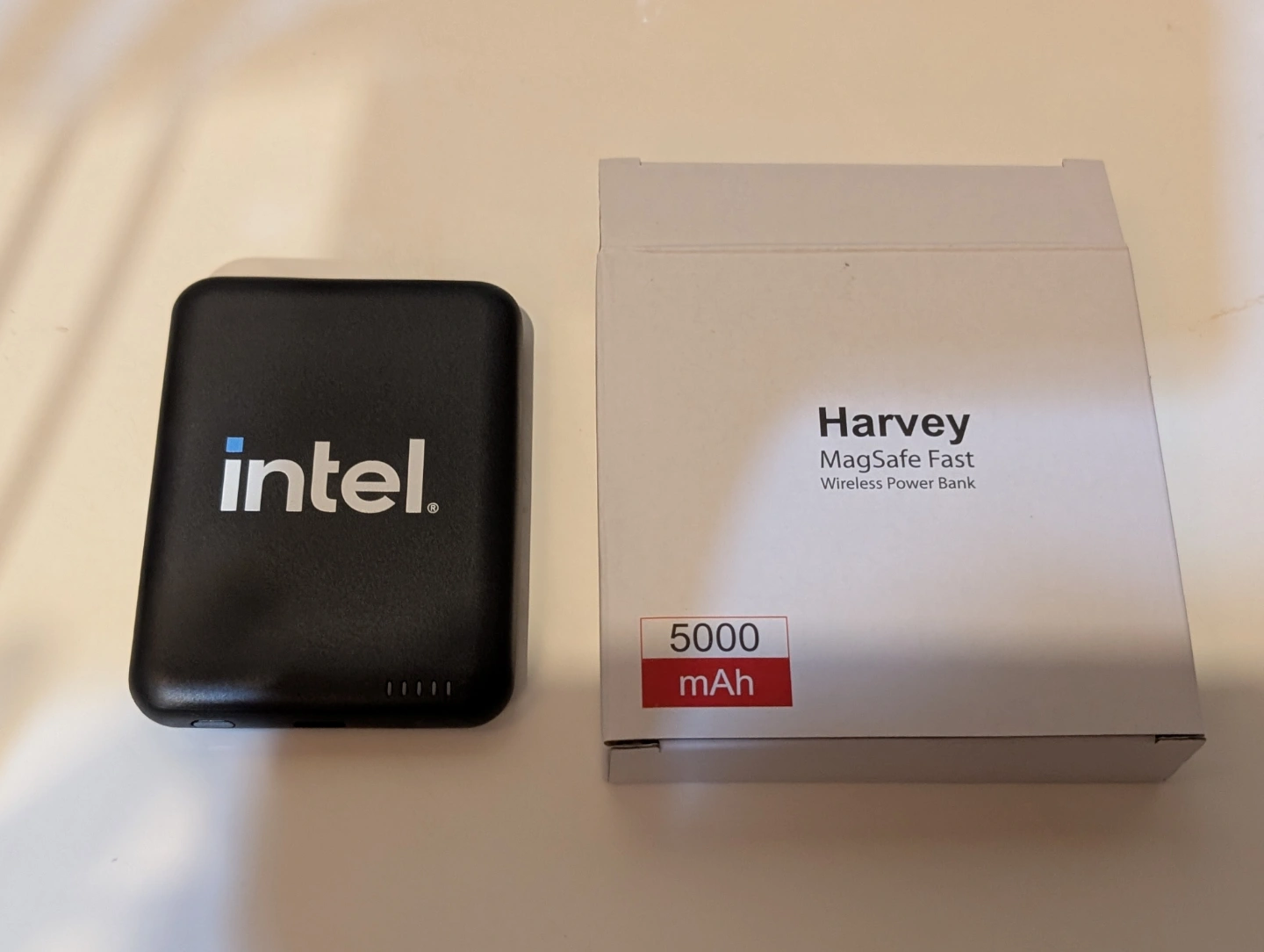 Intel-branded portable charger. 5000 mAh battery. Wireless charging capabilities. Includes original packaging. https://www.orderswag.com/products/pwb352-sj?srsltid=AfmBOooSPreynmGwO0yJBH4owgWDCWMJO9e53bKXOk3jEvg2XpFvKtO8 Attaching the MagSafe Battery Pack is a snap. Its compact, intuitive design makes on-the-go charging easy. The perfectly aligned magnets keep it attached to your iPhone 12 and iPhone 12 Pro or iPhone 13 and iPhone 13 Pro for iPhone owners, it makes sense to snag a power bank that supports Appleās MagSafe technology. Forget fumbling with cables or trying to juggle two devices. You can stick a magnetic power bank to the back of your iPhone, charge it wirelessly, and then detach and stuff it in a bag when empty. providing safe and reliable wireless charging. And it automatically charges, so theres no need to turn it on or off. Theres no interference with your credit cards or key fobs either. At your desk and need a charge? Just plug a Lightning cable into the MagSafe Battery Pack for up to 15W of wireless charging. Short on time? With a higher than 20W power adapter, you can charge both the MagSafe Battery Pack and your iPhone even faster. And you can track the status of your charge on the Lock Screen. This portable charger is recommended to use with a 20W or higher USB-C Power Adapter and USB-C to Lightning Cable (sold separately) Compatibility: iPhone 13 Pro Max, iPhone 13 Pro, iPhone 13, iPhone 13 mini, iPhone 12 Pro Max, iPhone 12 Pro, iPhone 12, iPhone 12 mini