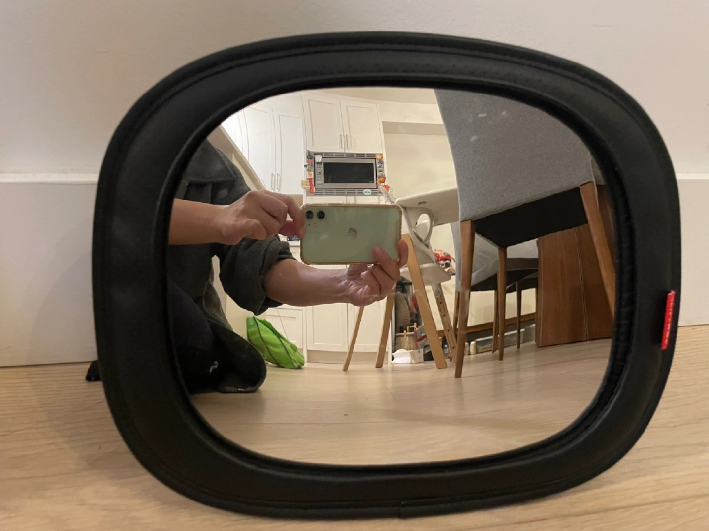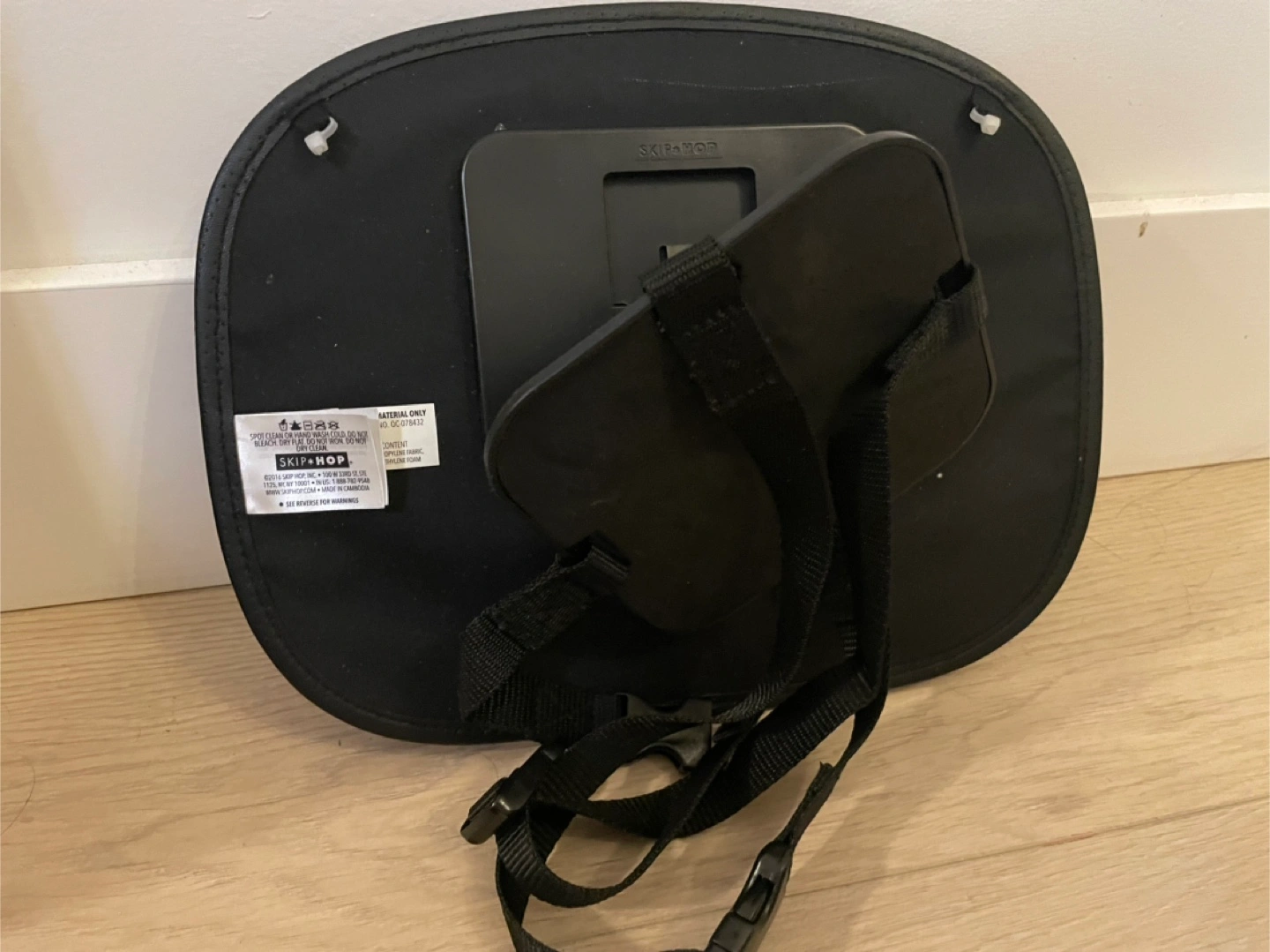 Black car mirror for backseat viewing. Adjustable straps for secure attachment. Like new condition. There’s some minor scratches on the mirror but it’s not noticeable esp when you’re driving.