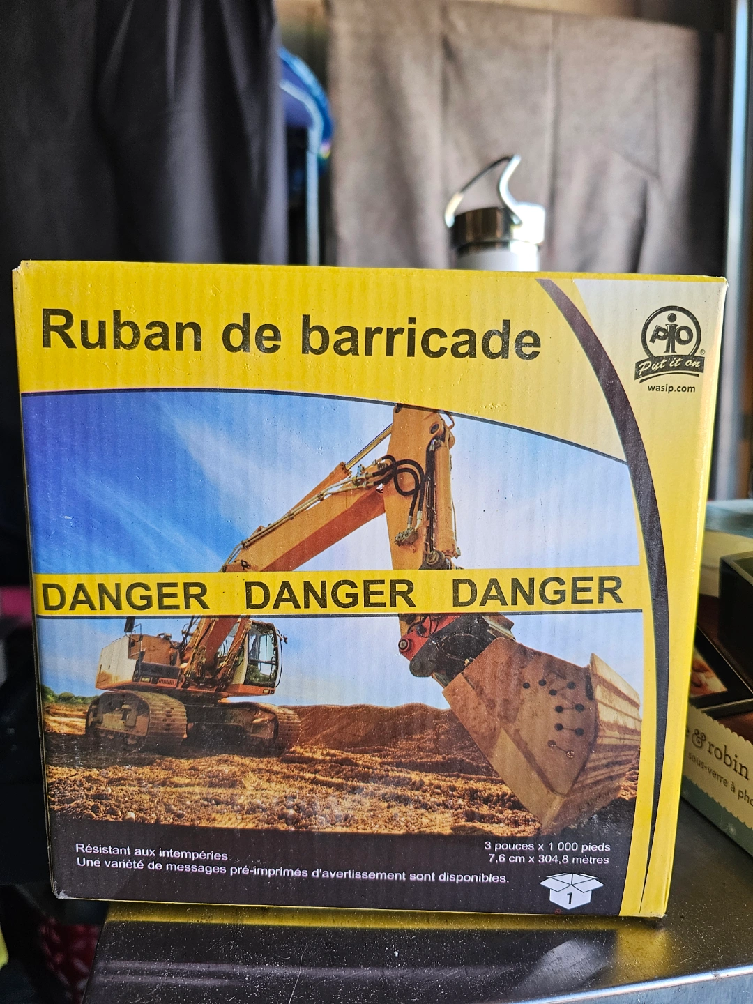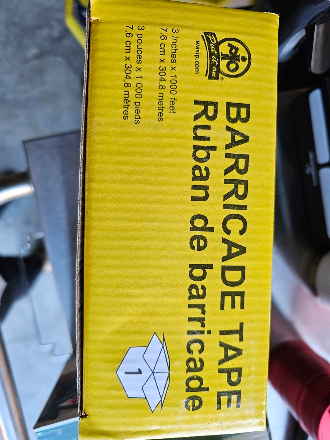 New roll of red barricade tape. 3 inches wide, 1000 feet long. Pre-printed with the word DANGER. Weather resistant. Perfect for construction sites or other areas requiring hazard marking.