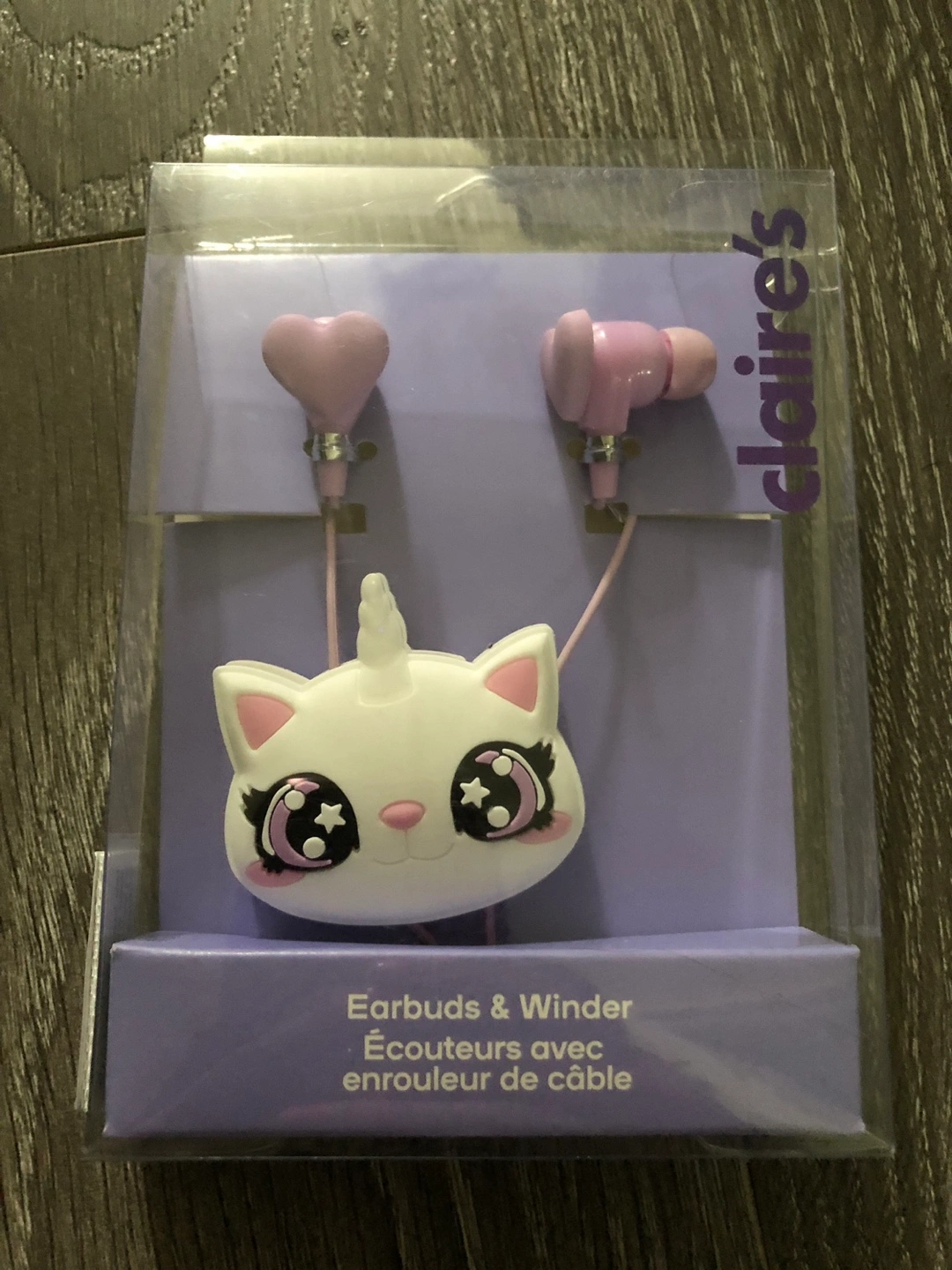 Brand New in Box. Super cute unicorn earbuds with winder. Audio jack: 3.5mm, stereo Asking $15 Pick up in Pickering (Altona & Kingston Rd).