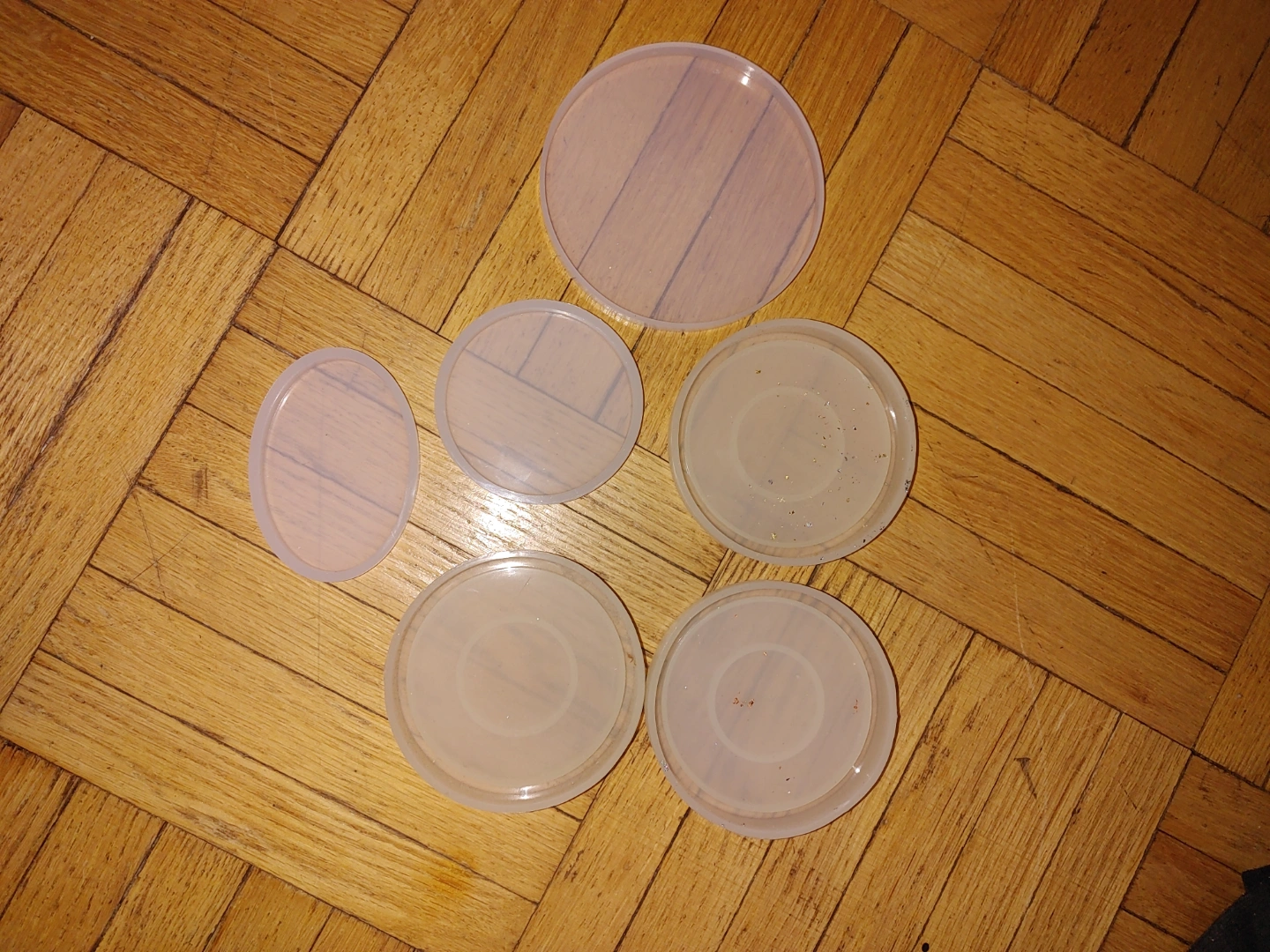 Set of five translucent silicone resin molds. Various shapes and sizes. Great for crafting.