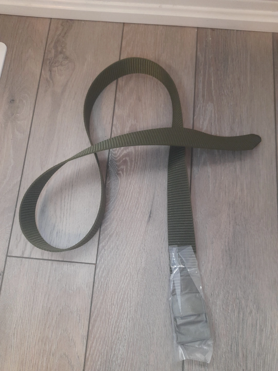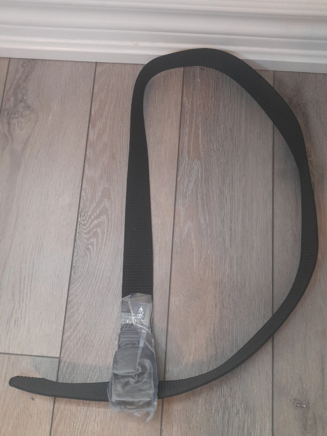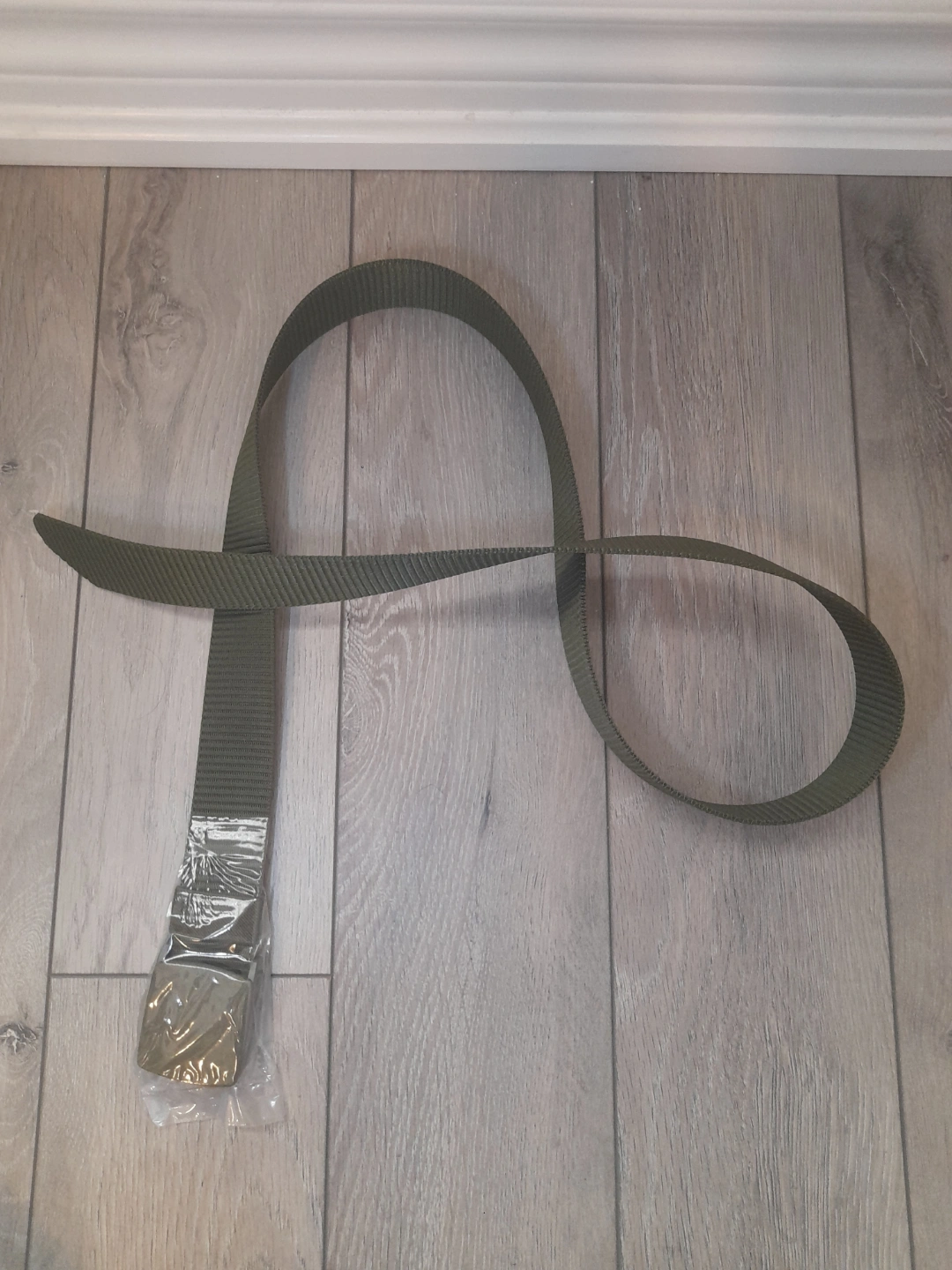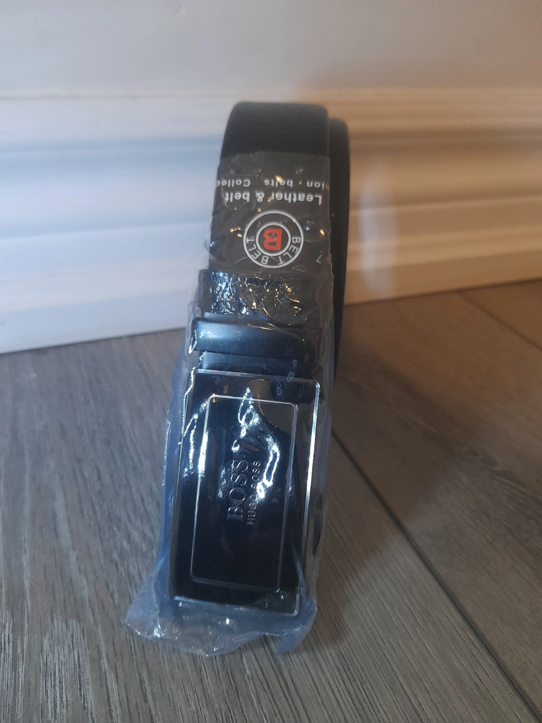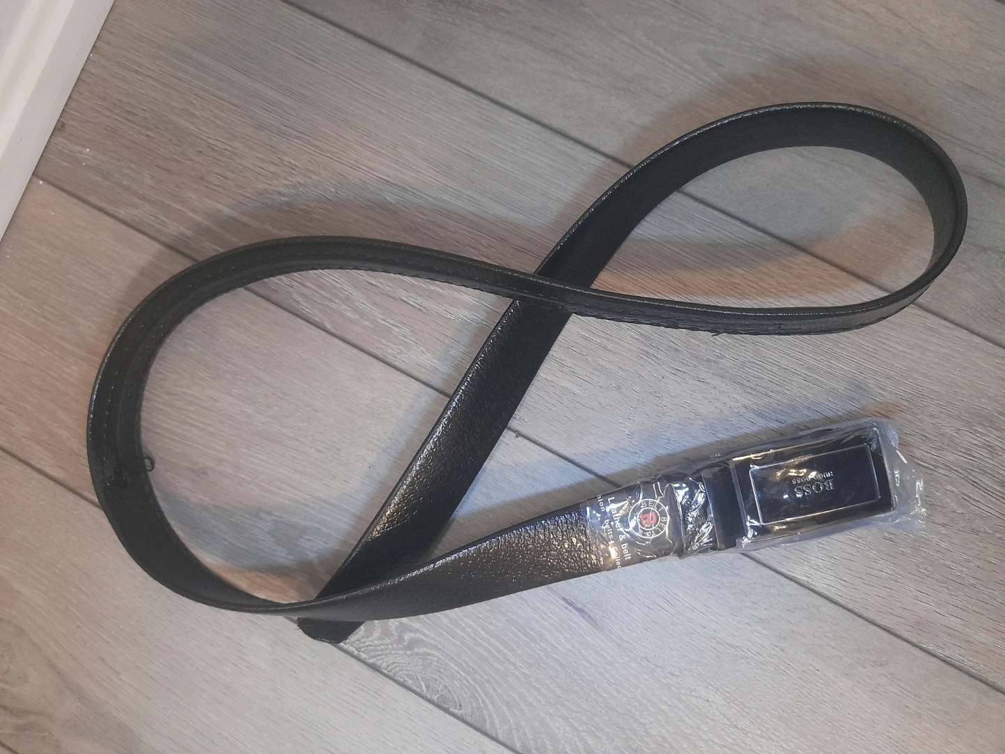 Brand new men's leather belt. Black/green. Automatic buckle. Looks stylish. Black is fake leather and the other one is cloth