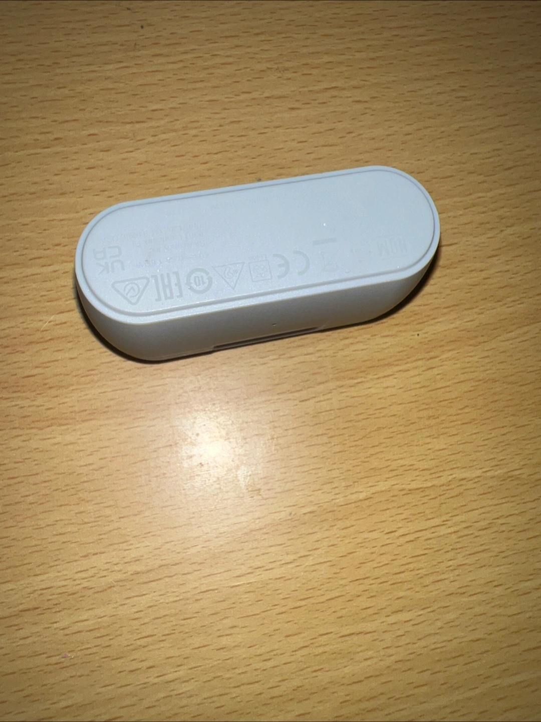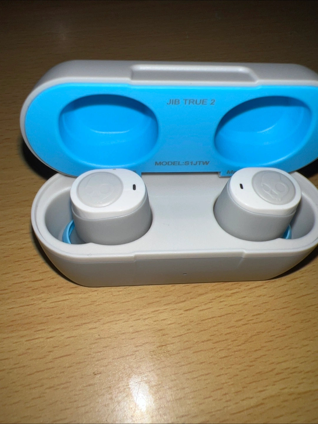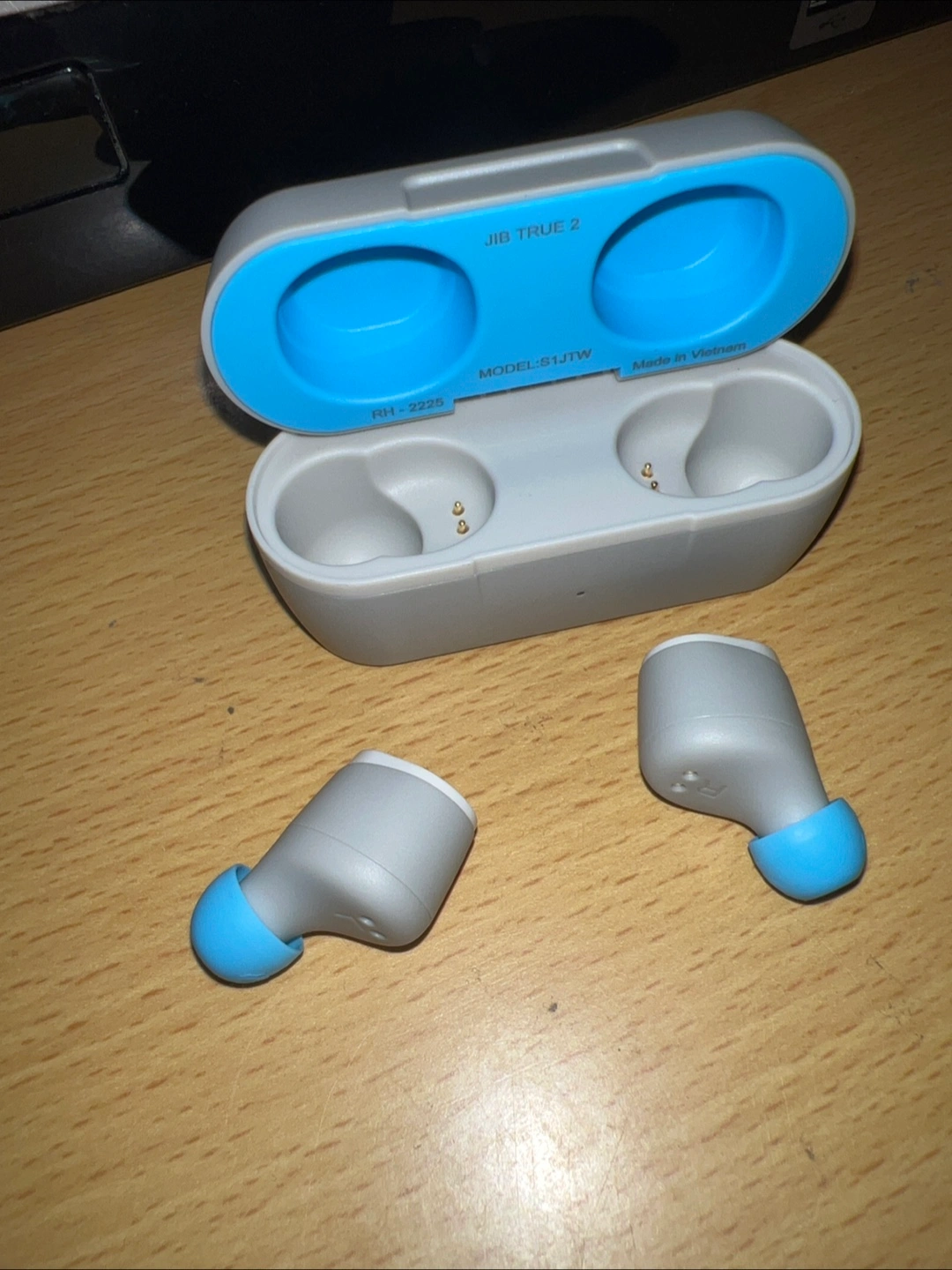 Grey wireless earbuds. Includes charging case. Model S1JTW. Made in Vietnam. Water proof headphones. Got as gift. Comes with charger and never used. Costed $60. Enjoy. Thanks