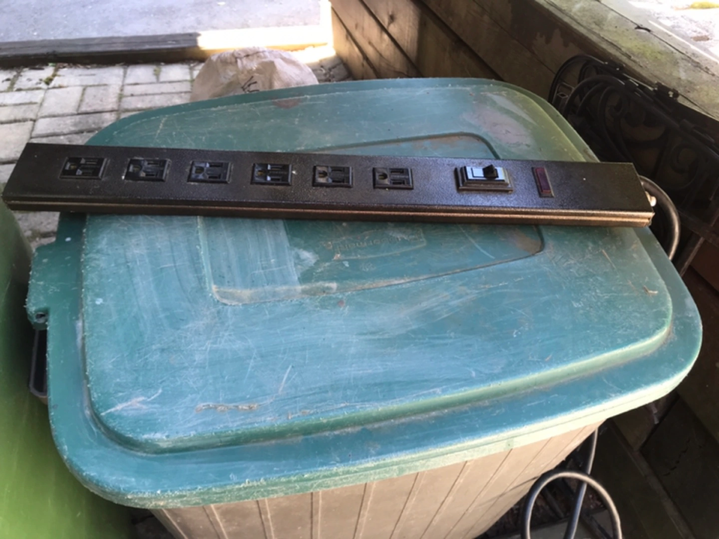 Long brown power bar. Six outlets. On/off switch. Power indicator light. Good working condition.! Pick up location is 10 Alcorn Avenue Toronto M4v1e4