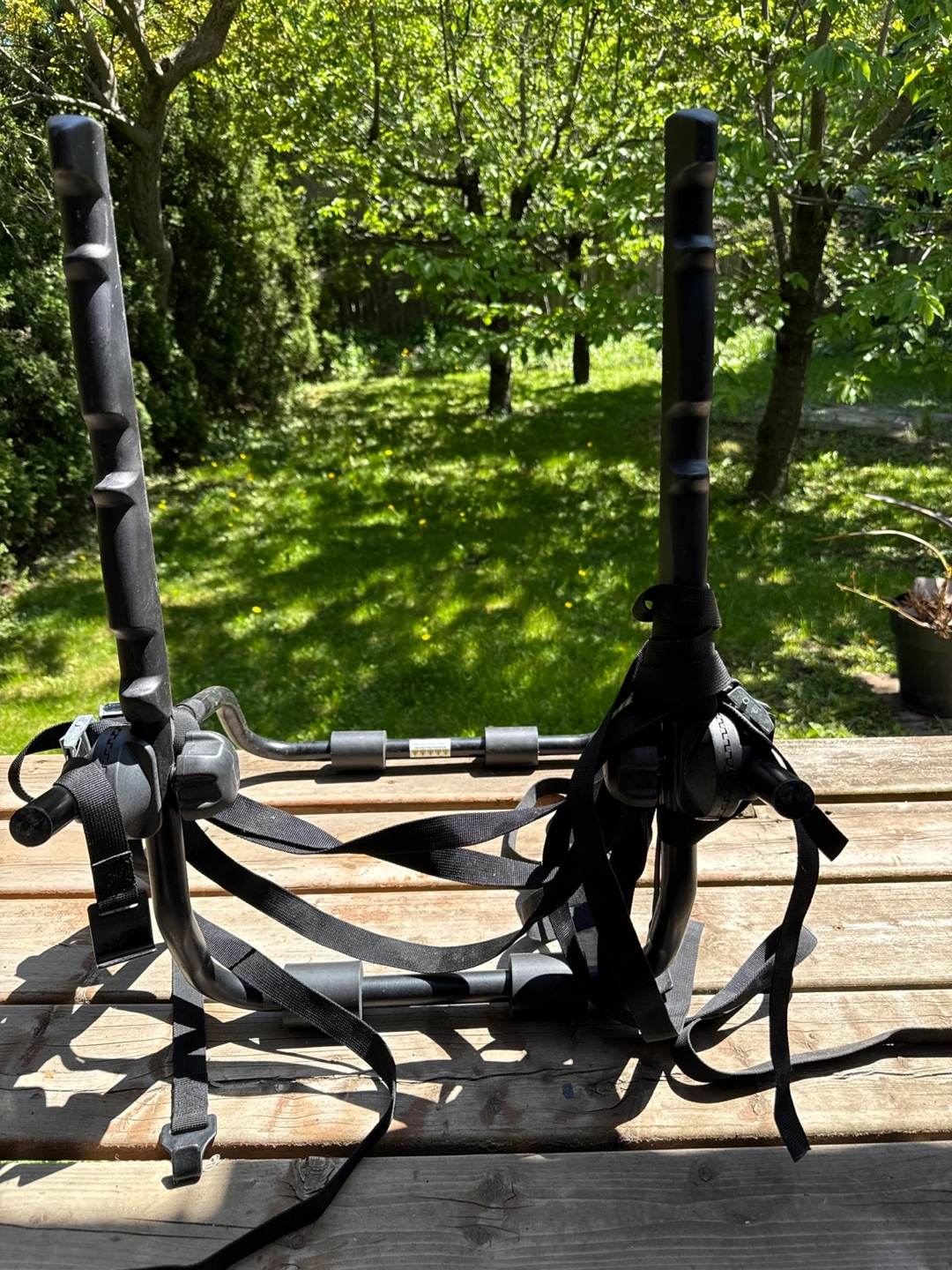 Hitch mount bike rack. Two bike capacity. Includes straps. Good condition. Pickup location is Yonge and Steeles ! Cash only!