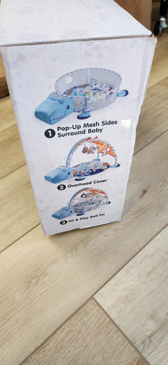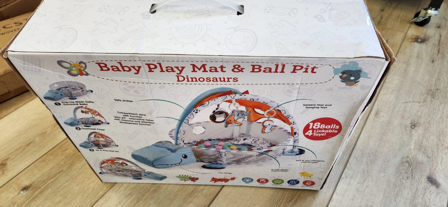 Brand New baby play mat and ball pit. Features pop-up mesh sides, overhead cover, and sit & play ball pit. Includes 18 colourful balls and 4 linkable toys. Suitable for babies 0m+