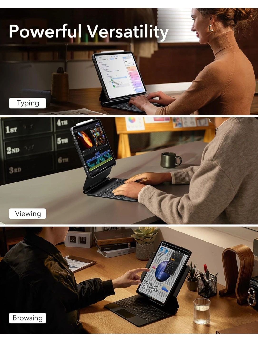 ESR iPad Pro 13 Inch Case with Keyboard (M4, 2024), iPad Pro 13 Keyboard Case with Easy-Set Magnetic Stand, Portrait/Raised Modes for iPad Pro 13 Keyboard, Removable Case, Rebound 360 Series, Black Tested and works great.