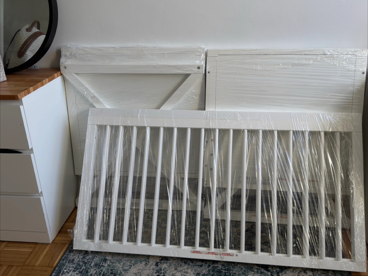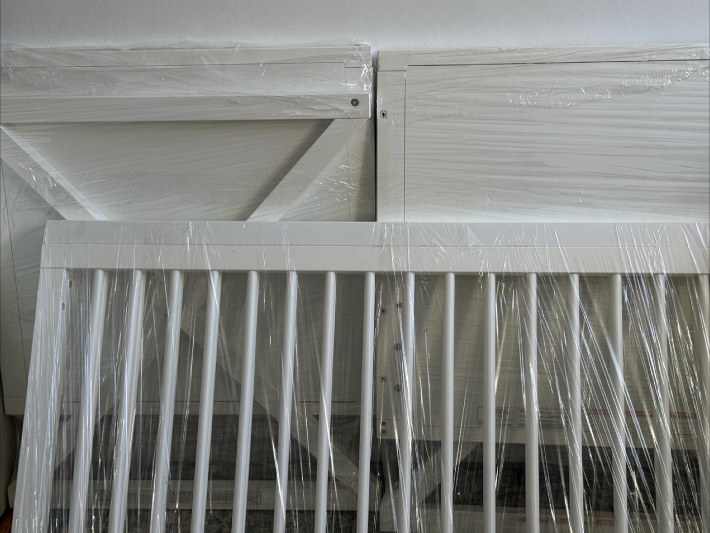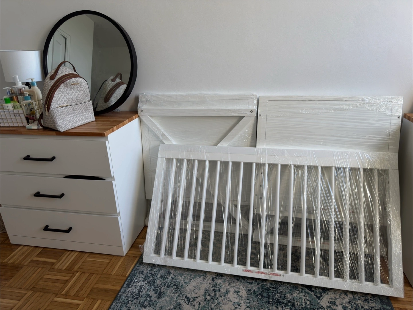 * Like new. My baby liked cosleeping better. So, used less than 10 times. * Dismantled and nicely wrapped. * Total value 600 plus taxes. * Crib Link: https://www.walmart.ca/en/ip/storkcraft-equinox-3-in-1-convertible-crib-white/6000202411551 * Mattress: Dual sided (soft and hard). Paid around 250 plus taxes. Don't have the link.
