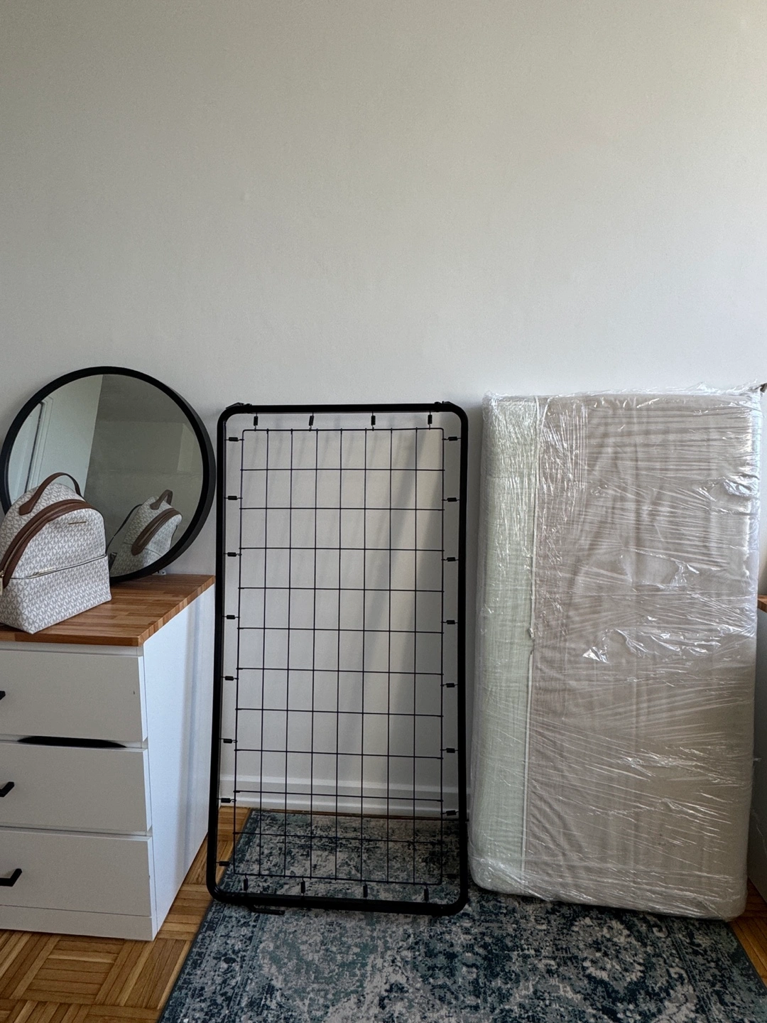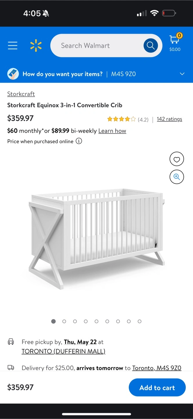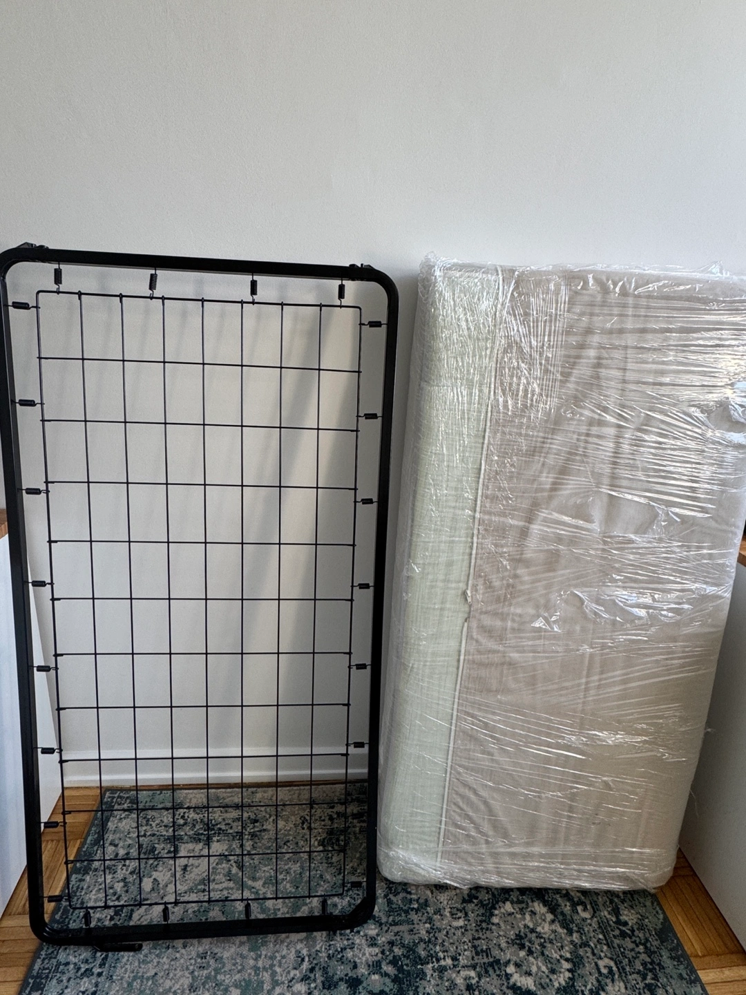 * Like new. My baby liked cosleeping better. So, used less than 10 times. * Dismantled and nicely wrapped. * Total value 600 plus taxes. * Crib Link: https://www.walmart.ca/en/ip/storkcraft-equinox-3-in-1-convertible-crib-white/6000202411551 * Mattress: Dual sided (soft and hard). Paid around 250 plus taxes. Don't have the link.
