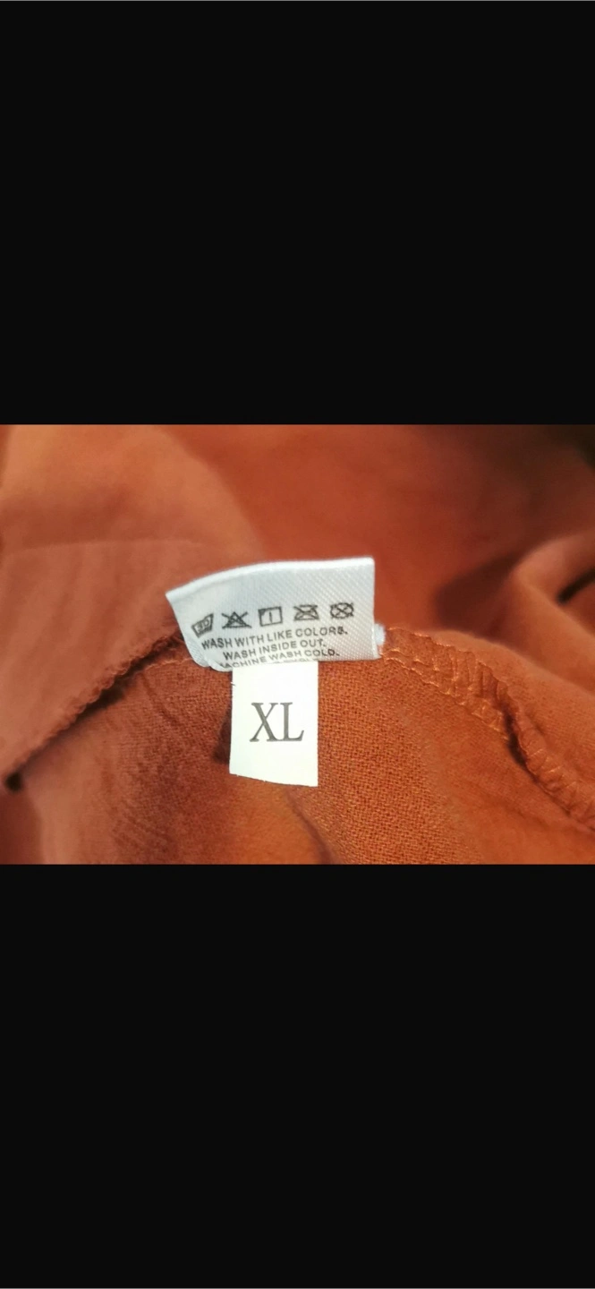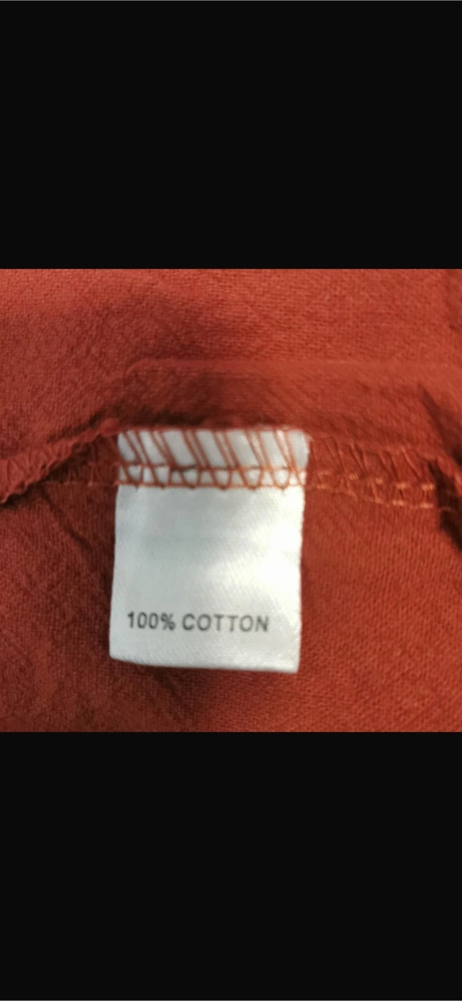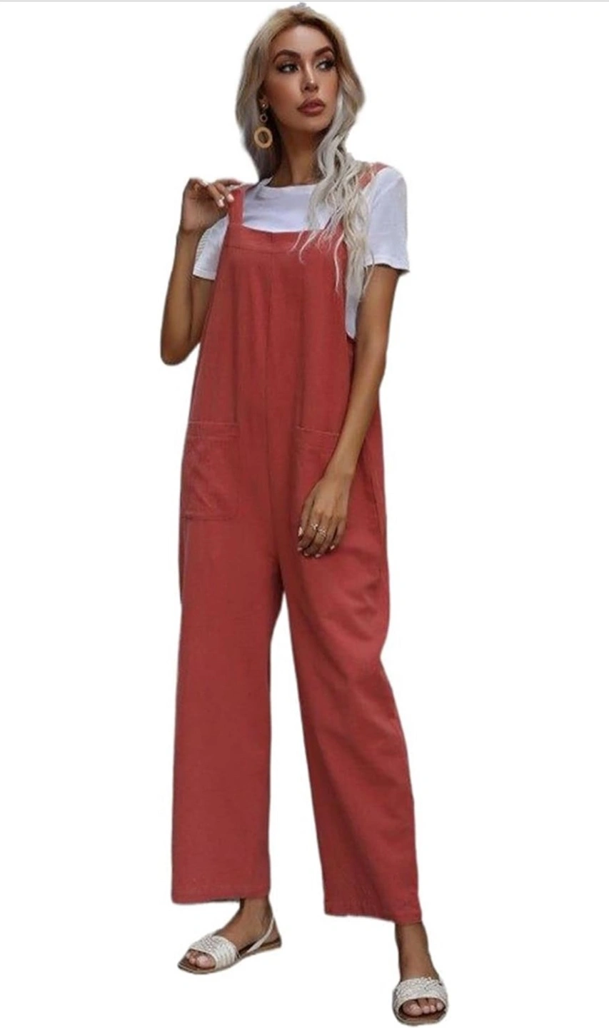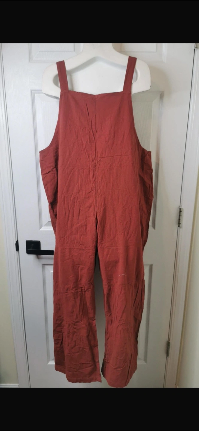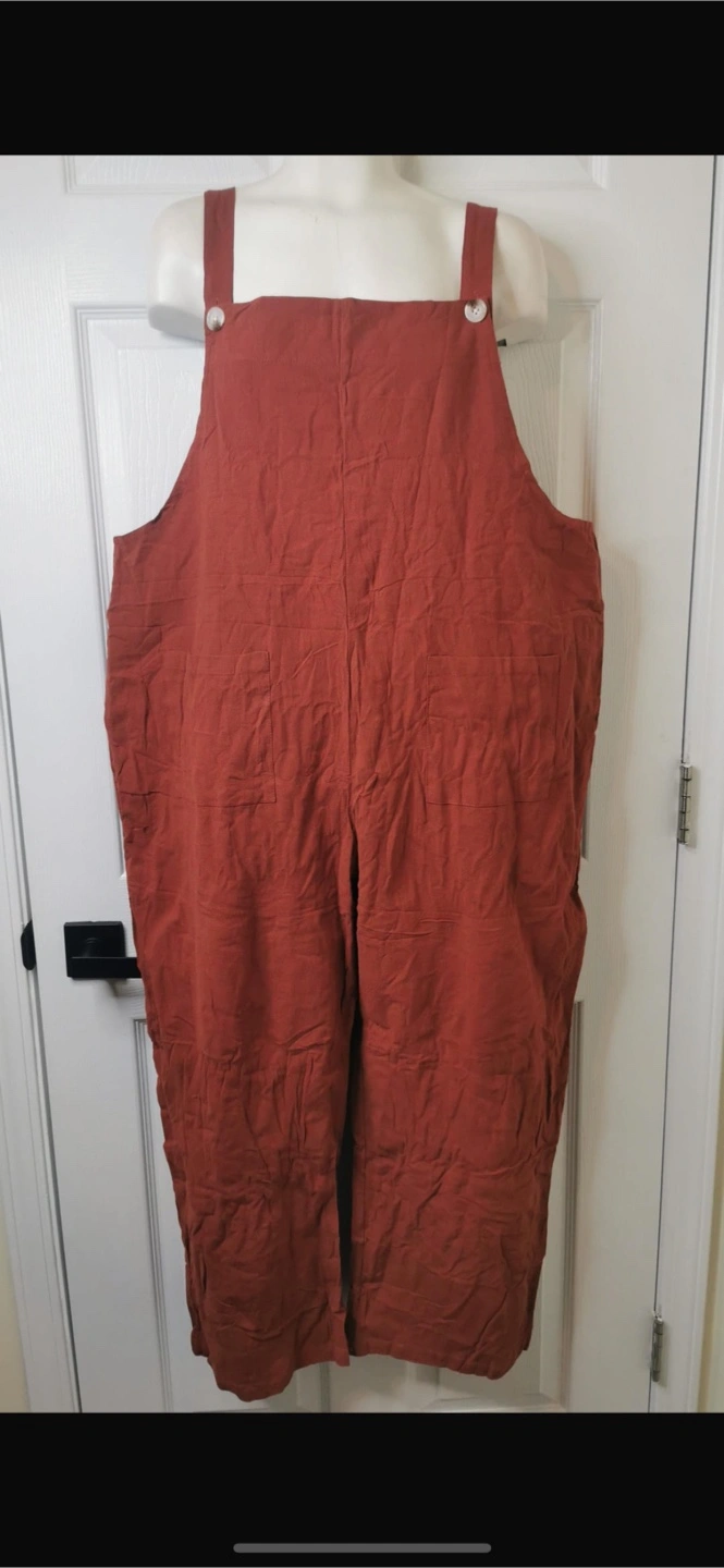 New! 100% cotton. Rust coloured. Wide leg. Adjustable straps. Pockets. Size XL.
