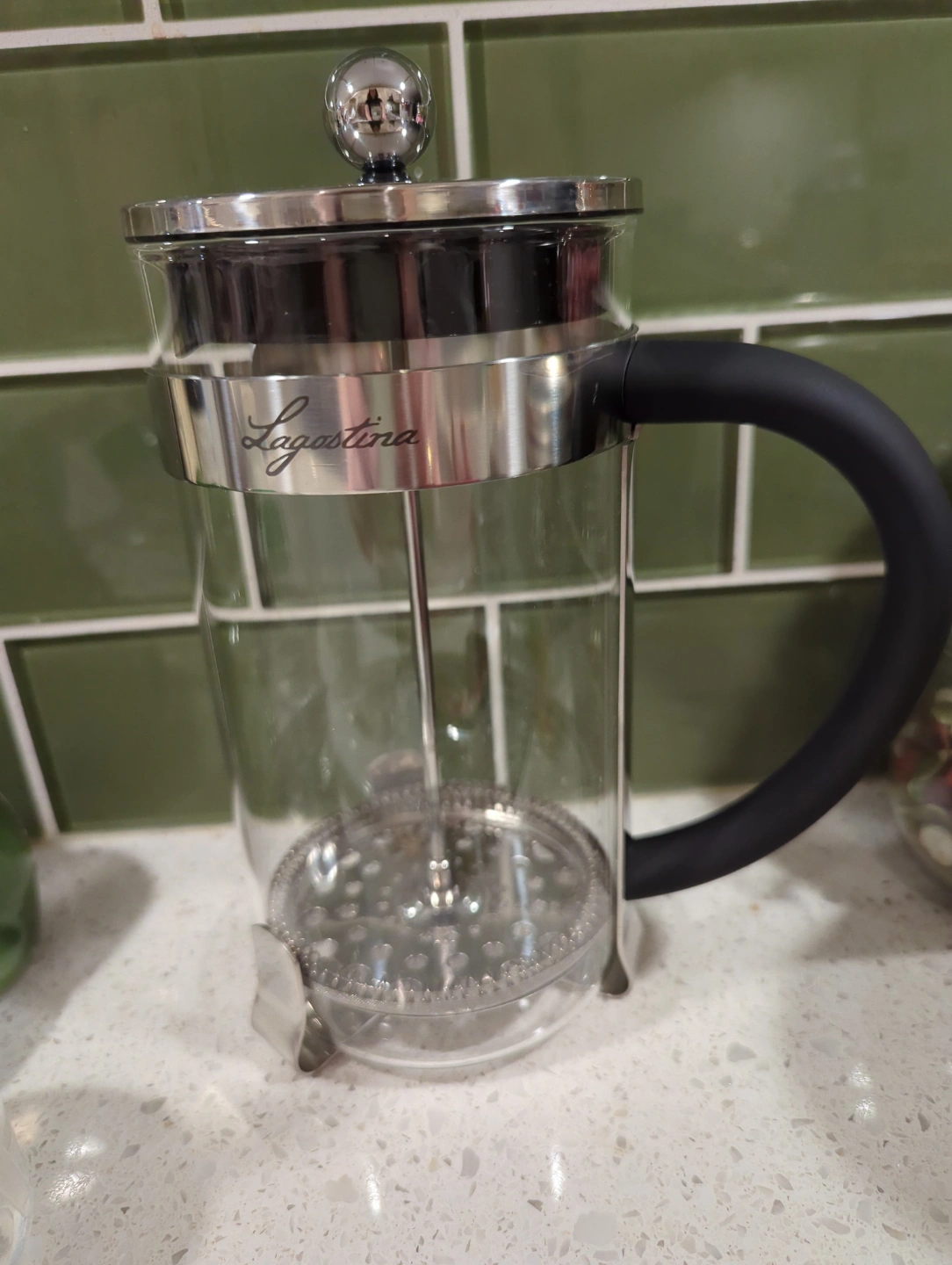 Glass and stainless steel French press. Beautiful design. Includes plunger and lid. Black handle. Stainless steel feet. Don't think we ever used this. 5 cups. Retails $23 at Canadian Tire. Asking $12. Pickup King and Sackville, cash.