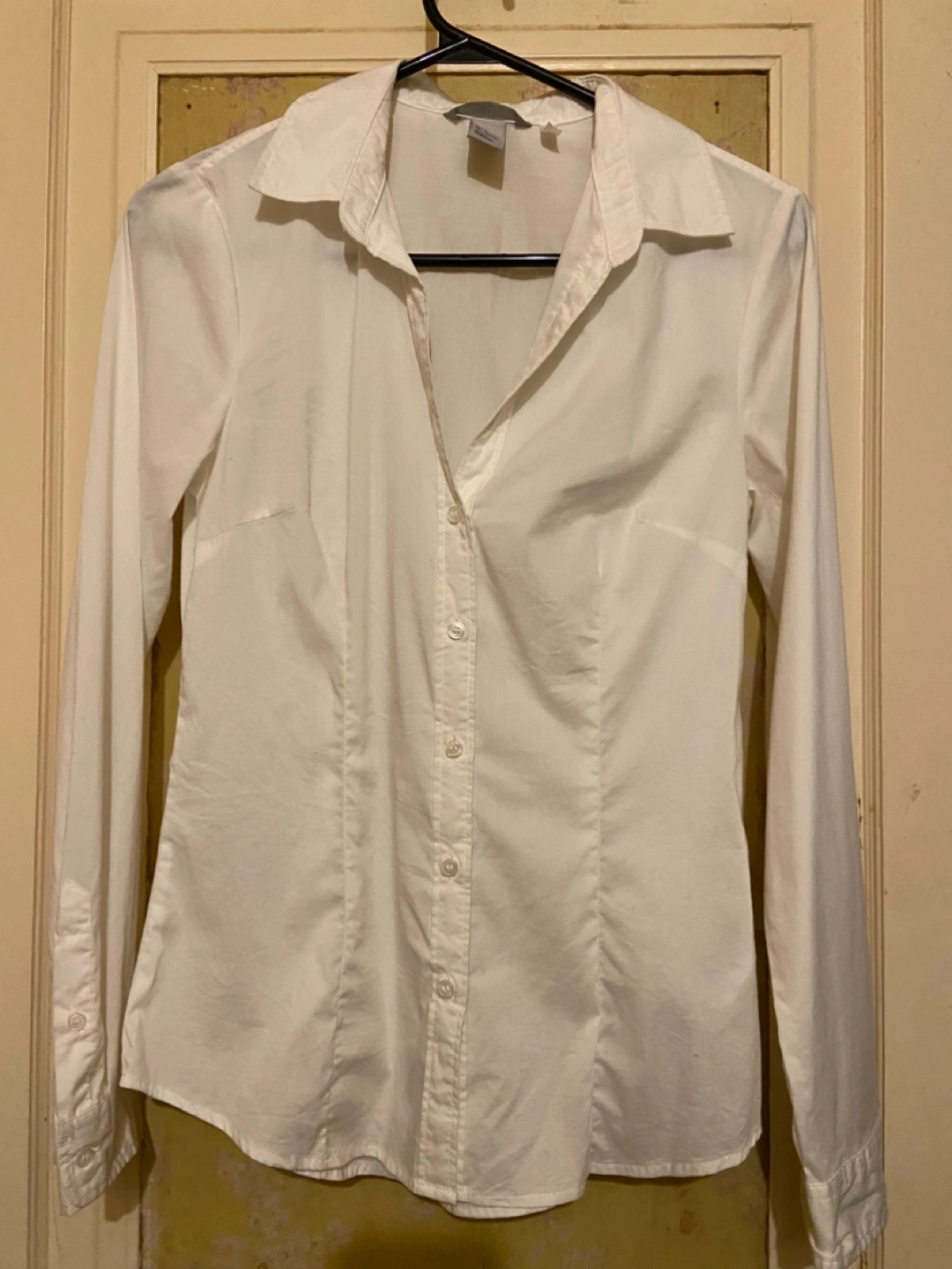 Women’s white shirt sz6 This H&M women’s white shirt is a size 6 and features long sleeves and a button-up front, perfect for any professional or casual setting. This shirt is in used condition. Here are some additional details: * Brand: H&M * Size: US 6 / EUR 36 * Material: 67% Cotton, 30% Polyamide, 3% Elastane * Colour: White In good condition Hardly worn Cash Payment Only No Refunds / Exchange No try ons, No trading, No holds. All purchases are Finally Sale From a Smoke Free home Fast pick up Confirmed Price-$10 Cash only Pick up- Only at TTC Station- Coxwell subway station Located In East York, Toronto If you are reading this, the item is still available, so no need to ask!