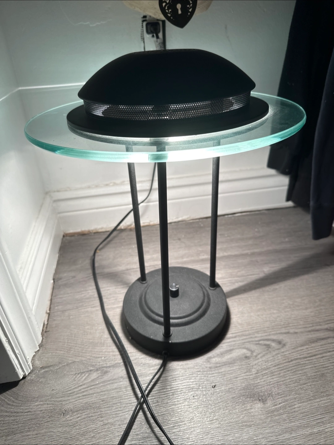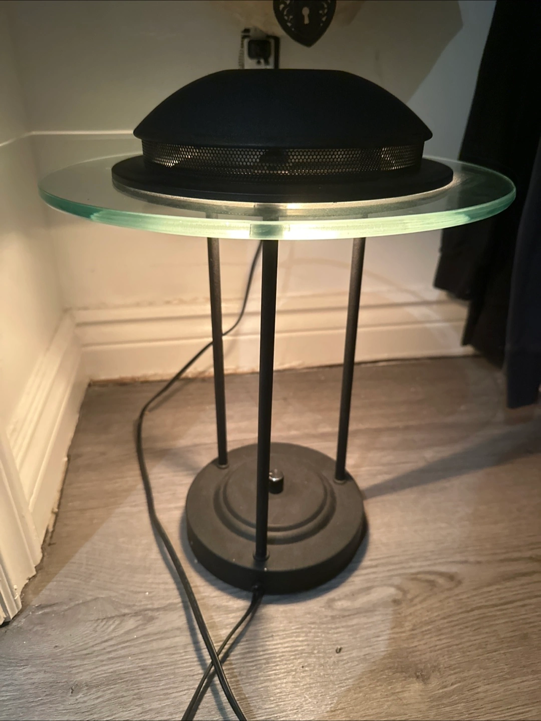 Black metal desk lamp. Glass top. Simple design. In the style of Robert Sonneman. Original 320 without tax selling for 150 open to offers