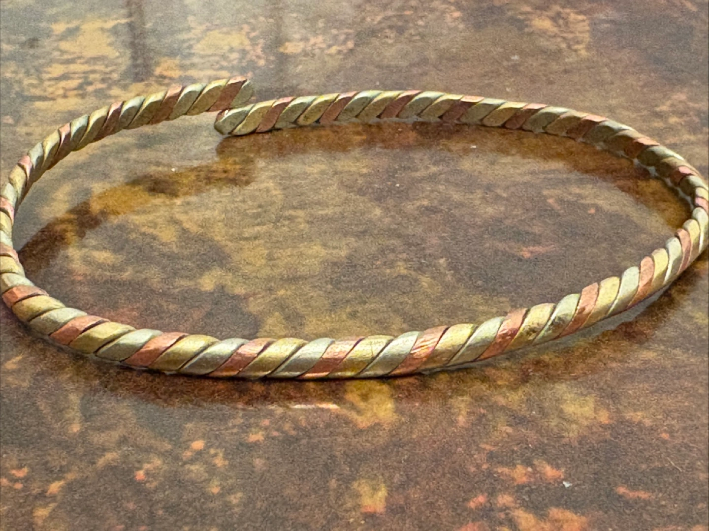 Beautiful vintage bracelet. Three-toned metal design. Twisted wire construction. Open design.