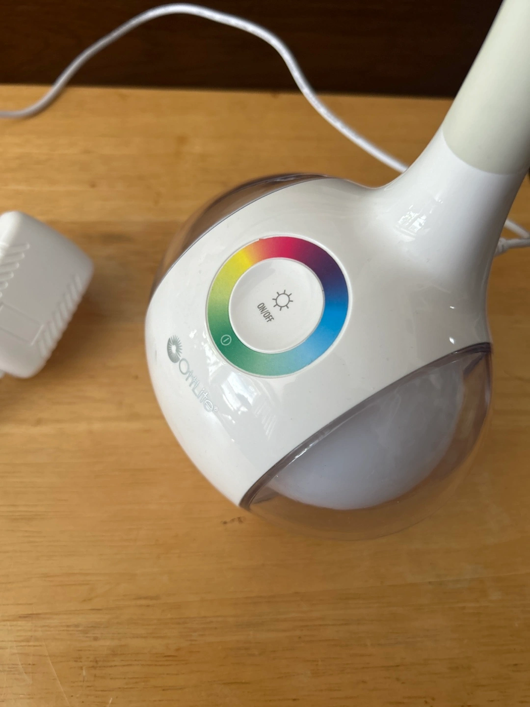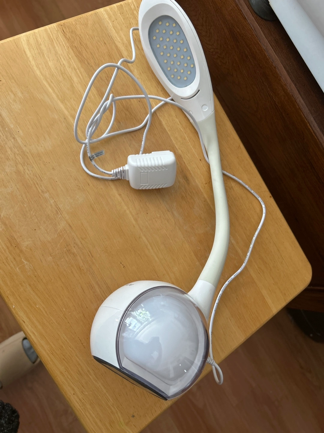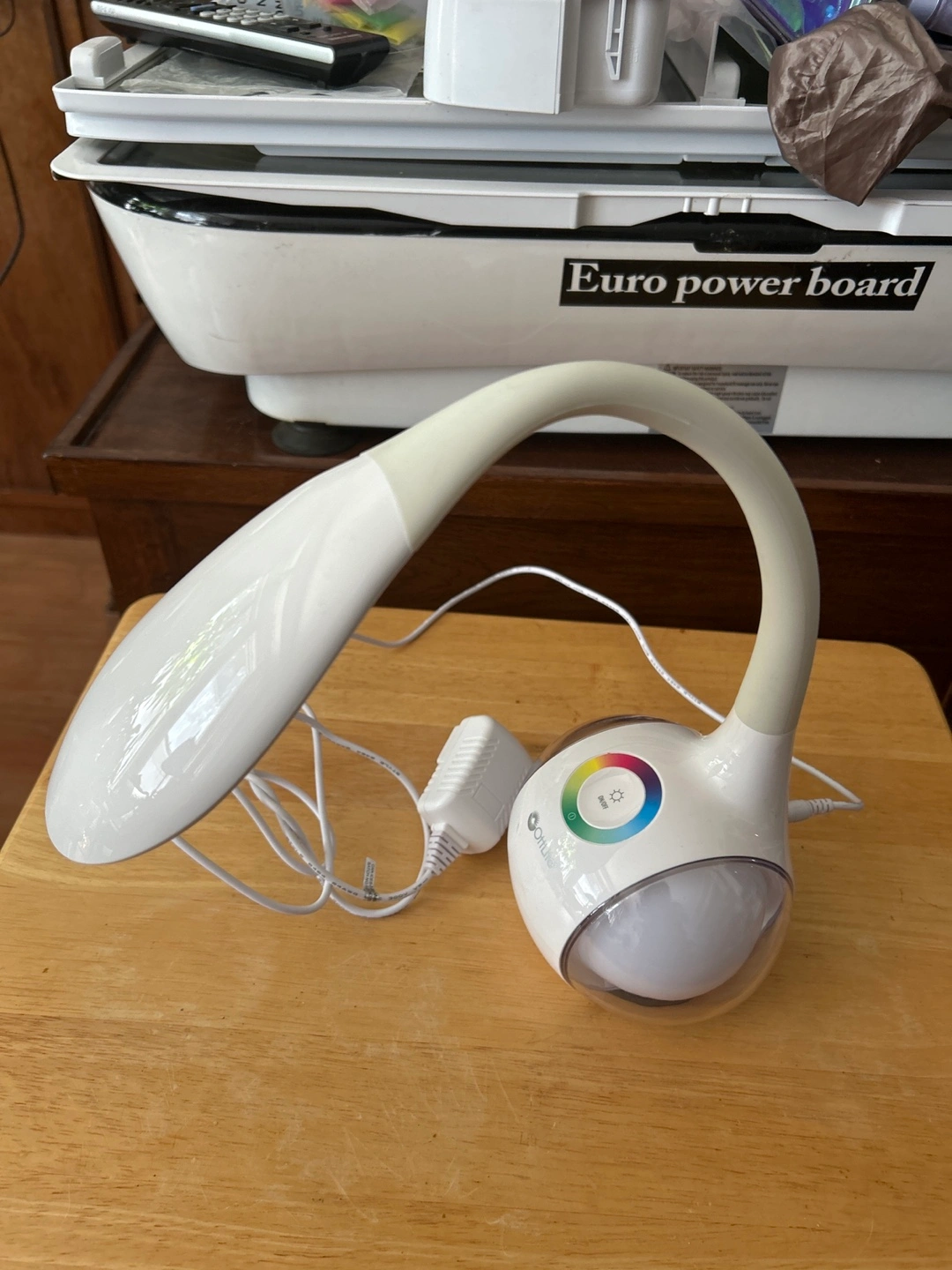 Flexible gooseneck desk lamp. Colour changing LED light with different light intensity. Includes power adapter