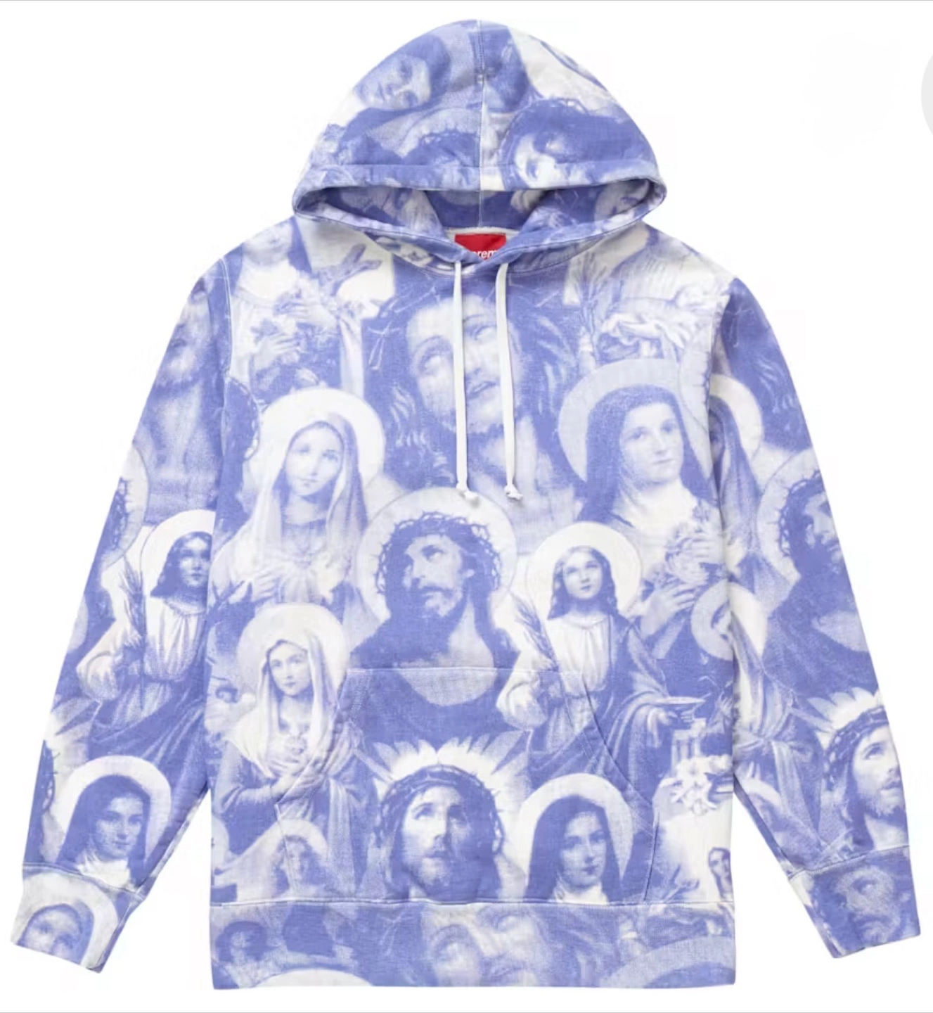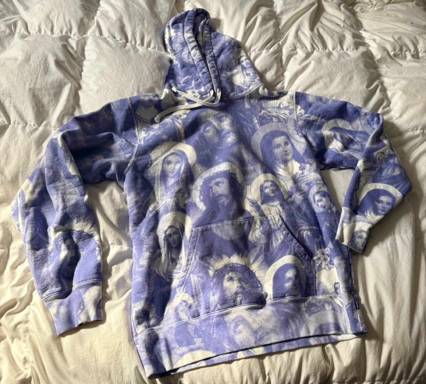 Men's Supreme Jesus and Mary Hooded Sweatshirt with kangaroo pocket in size medium. It was only worn a couple times and is like new.