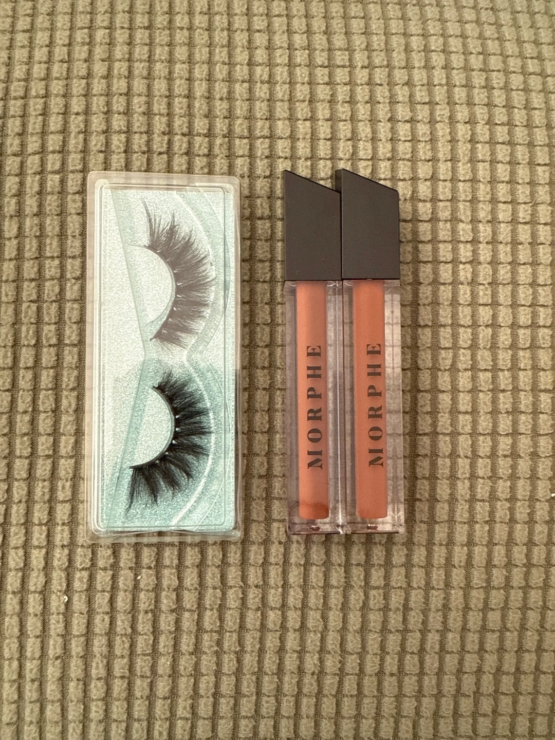Pair of Morphe liquid lipsticks in shade Sweet Tea. Includes one pair of free false eyelashes <3