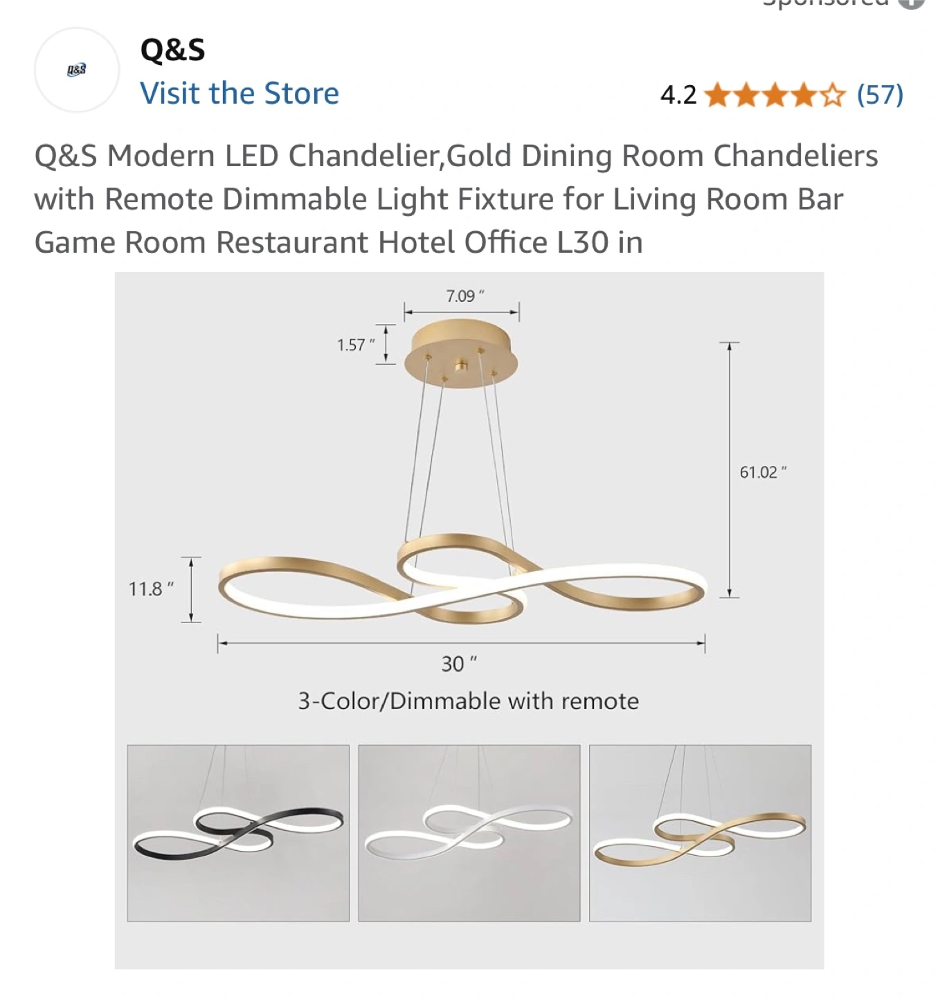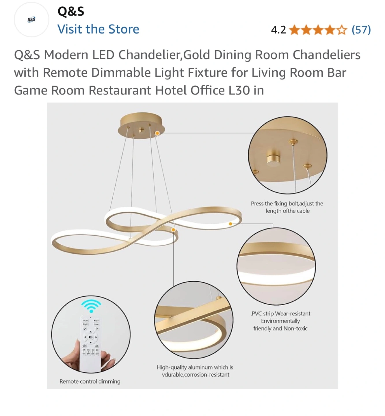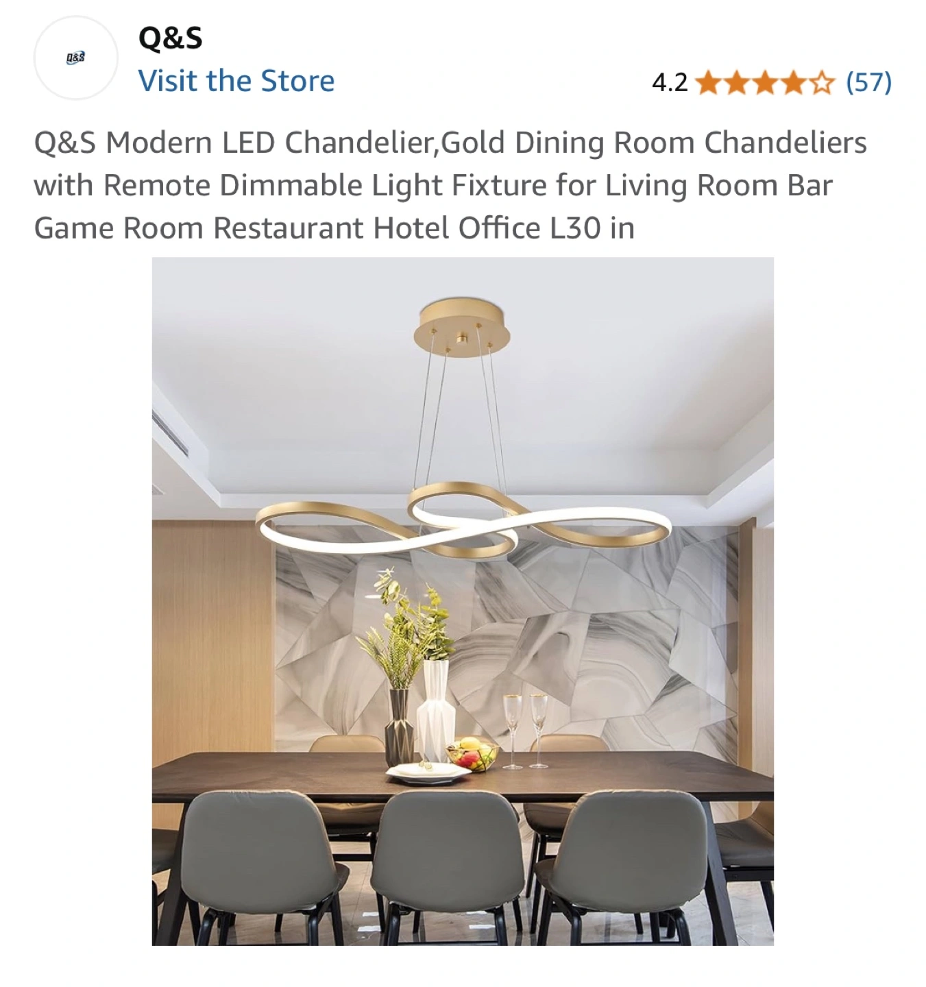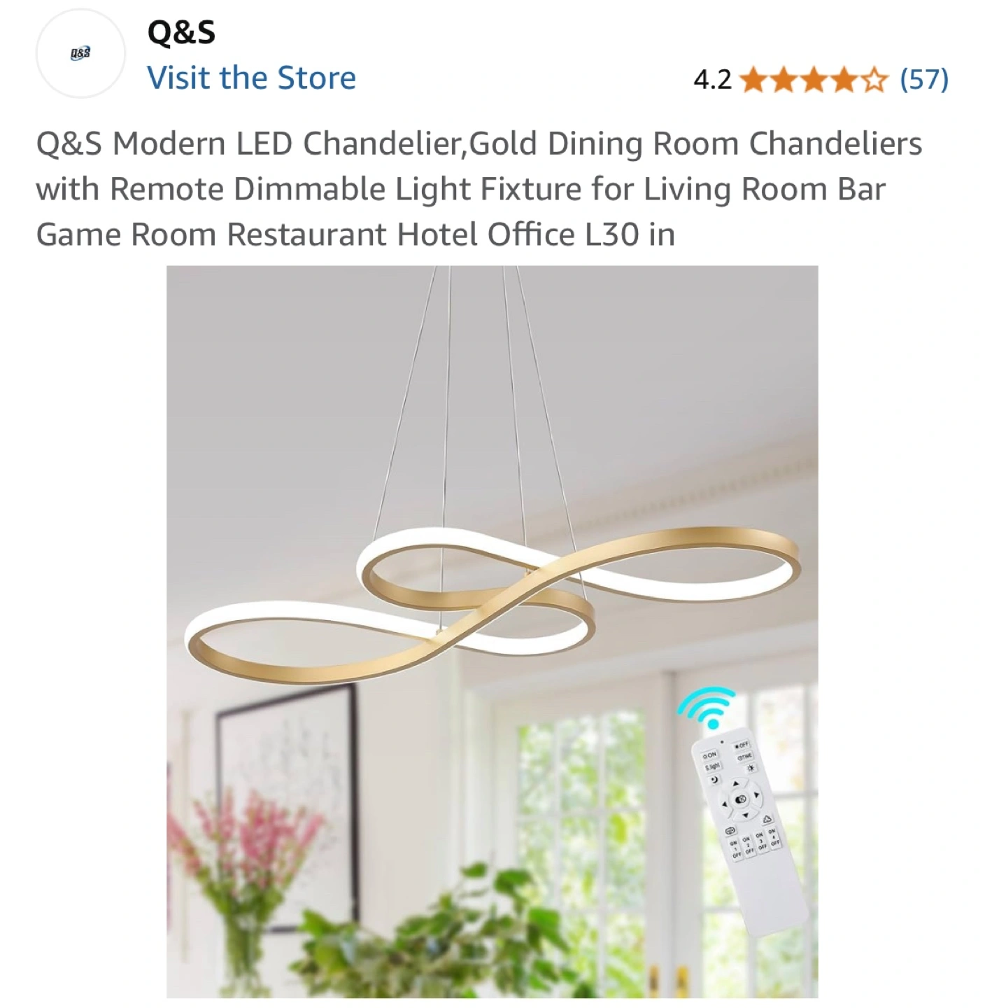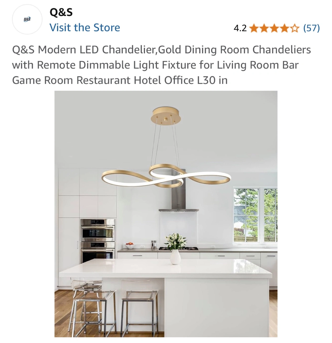 Brand Q&S Colour Gold Material Aluminum, Iron Style Modern Light fixture form Chandelier Room type Dining Room,Living Room,Kitchen Island,Foyer Perfect Design:This modern LED chandelier designed with creativity and artistry to create a unique visual experience in the space.It stands out with its unconventional and captivating design compared to traditional chandeliers.The hanging wires add a sense of modernity and lightness to the light fixture, giving it a floating effect in the space. Widely Applicable:This modern LED chandelier is perfect for a wide range of spaces,including living rooms,bedrooms,dining rooms,foyers,kitchen islands,stairs,beauty salons,offices,artsy game rooms,hotels,cafes,restaurants,entertainment areas,and commercial spaces.It adds a trendy and artistic flair,enhancing the atmosphere of each space. Easy Installation:This modern LED pendant light is easy to install without too many steps.The LED light fixture comes with dimming functionality built-in,eliminating the need for an additional dimmer switch.Simply install the power line and you can use a remote to adjust the brightness.The hanging wires are adjustable,allowing you to customize the height according to your preference. Size & Function:This LED chandelier of Length:28.74 inches,Width:13.39 inches and Total Height (ceiling to bottom): 61.02 inches. The hanging wires are adjustable.It is a remote dimmable LED lights with a power of 40 watts and a brightness of 2800 lumens,3000K-6000K.It can illuminate an area of 110-160 sq.ft.The modern led chandelier can be directly connected to the power line to enable the dimming function without connecting the dimmer switch.