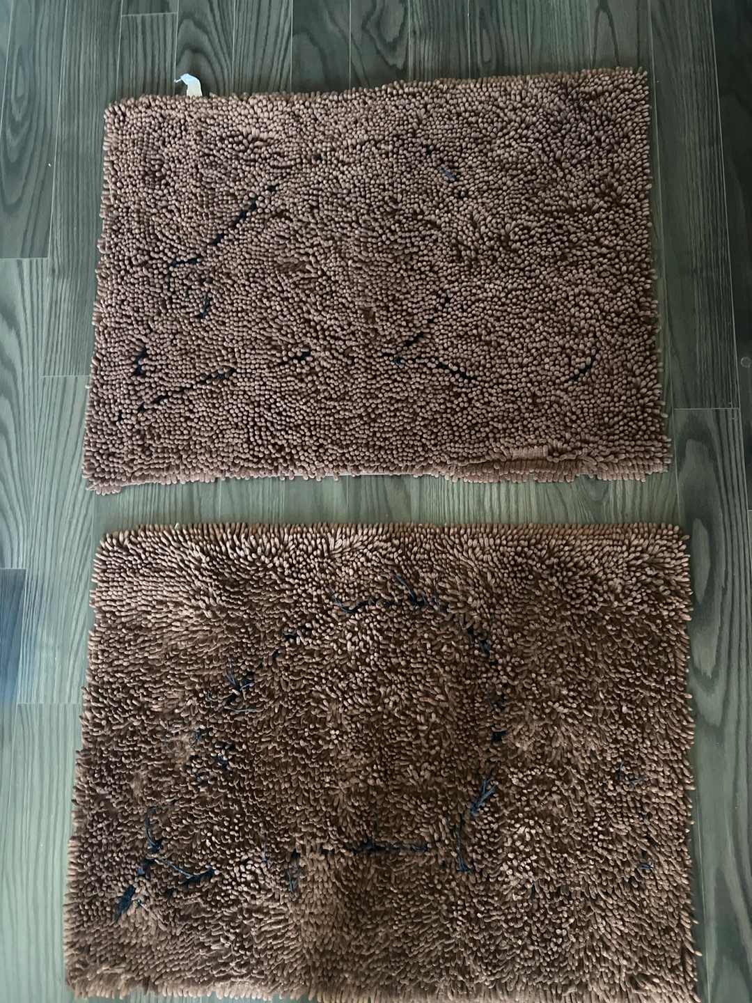 Two brown mats. Soft, absorbent material. Machine washable. $6 each or $10 for both