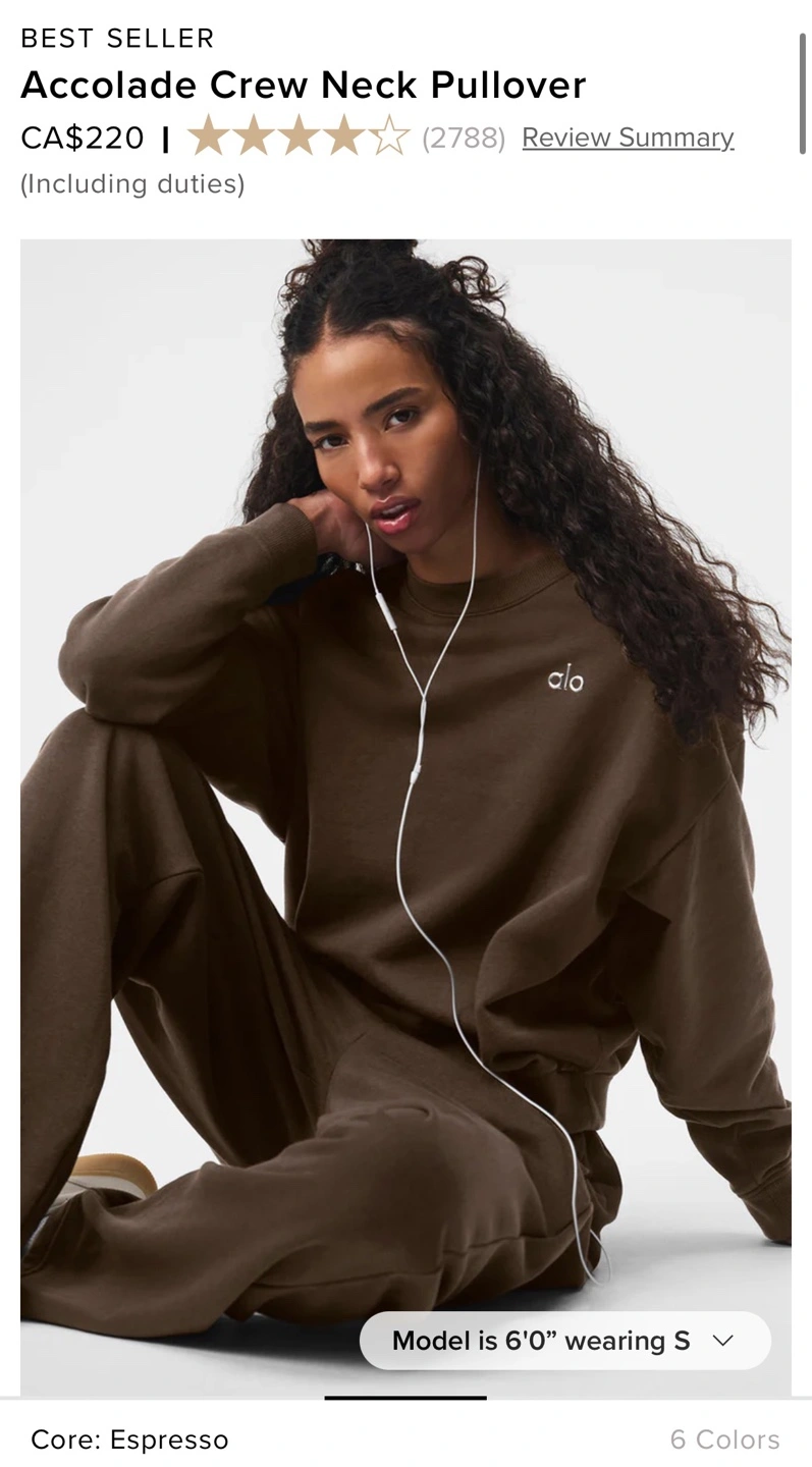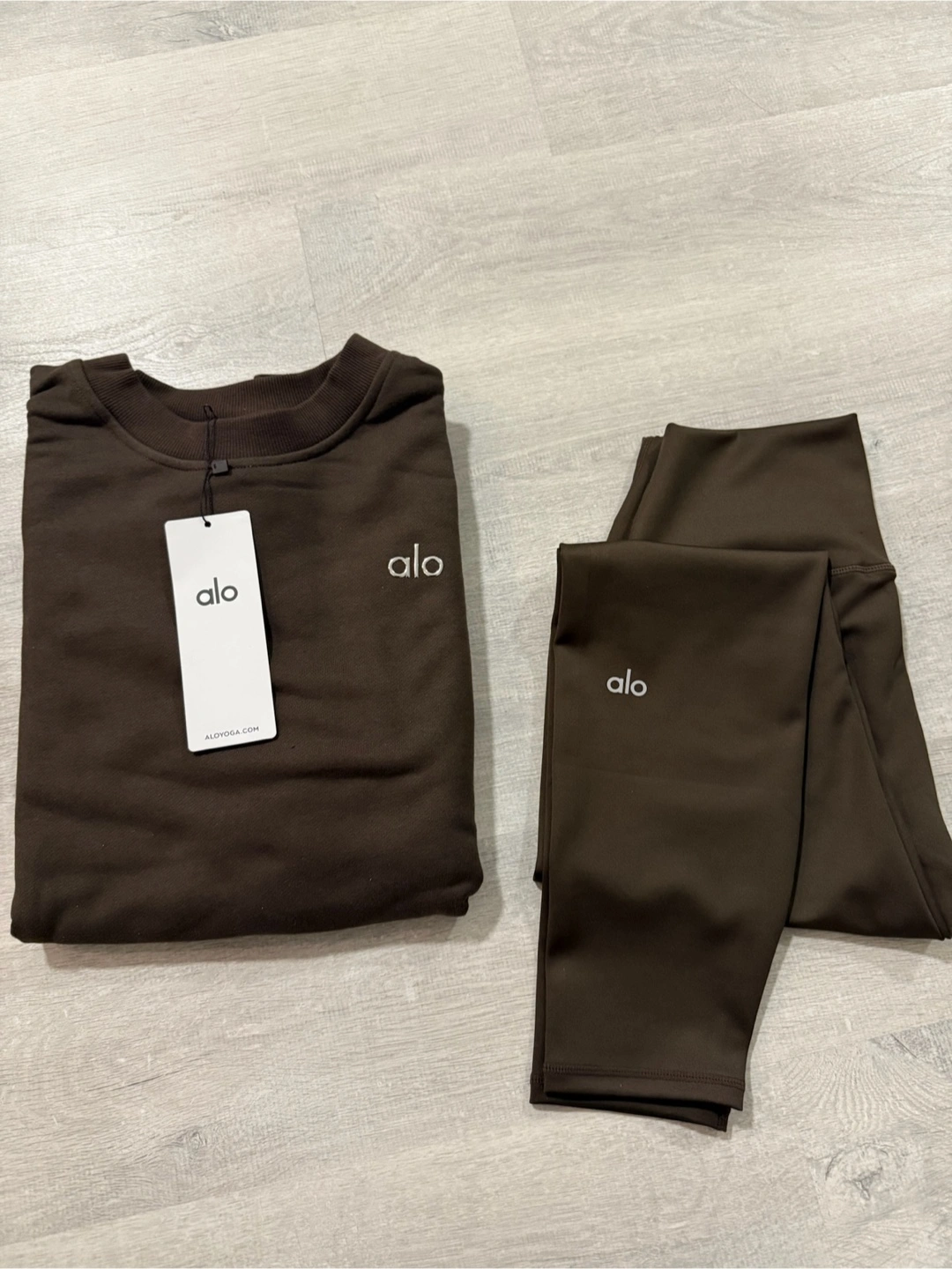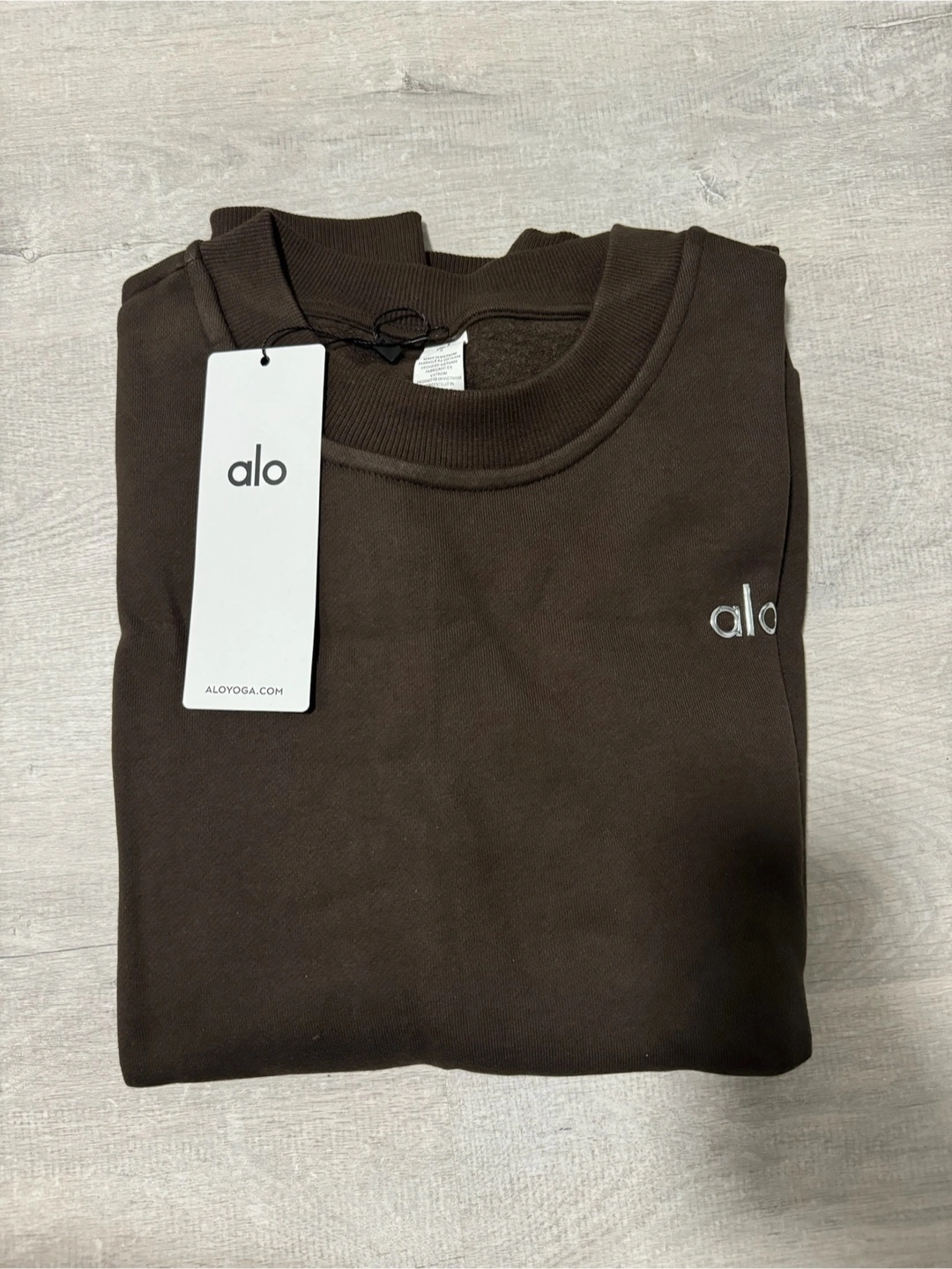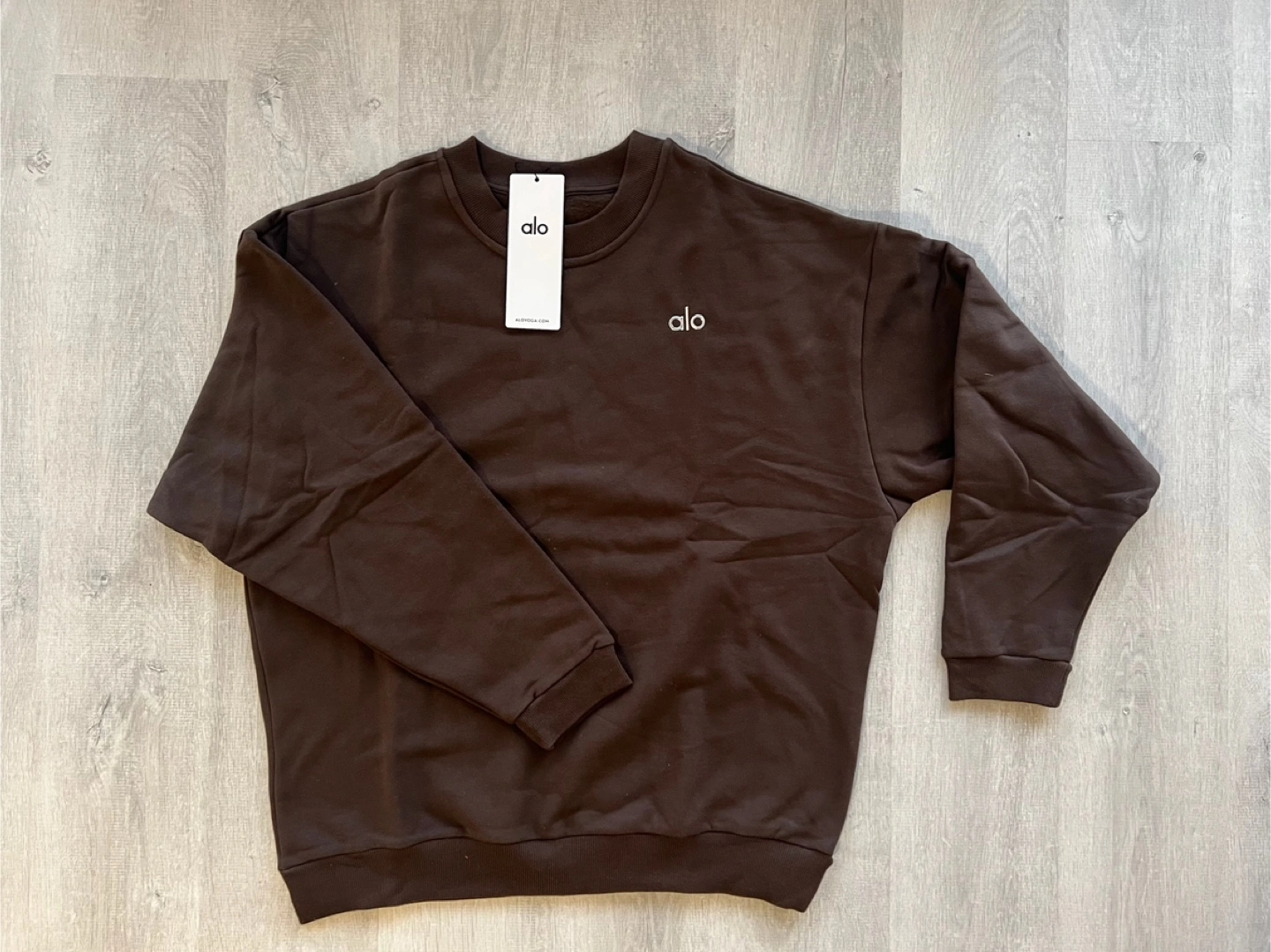 Brand new and authentic with tags. Alo Yoga Accolade Crew Neck pullover. Espresso brown colour. Soft and comfortable. Great for lounging or working out.