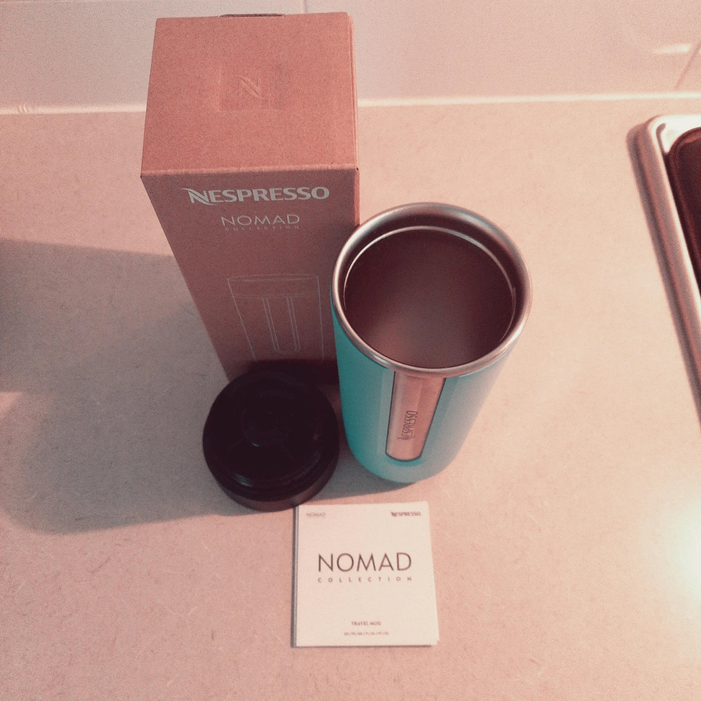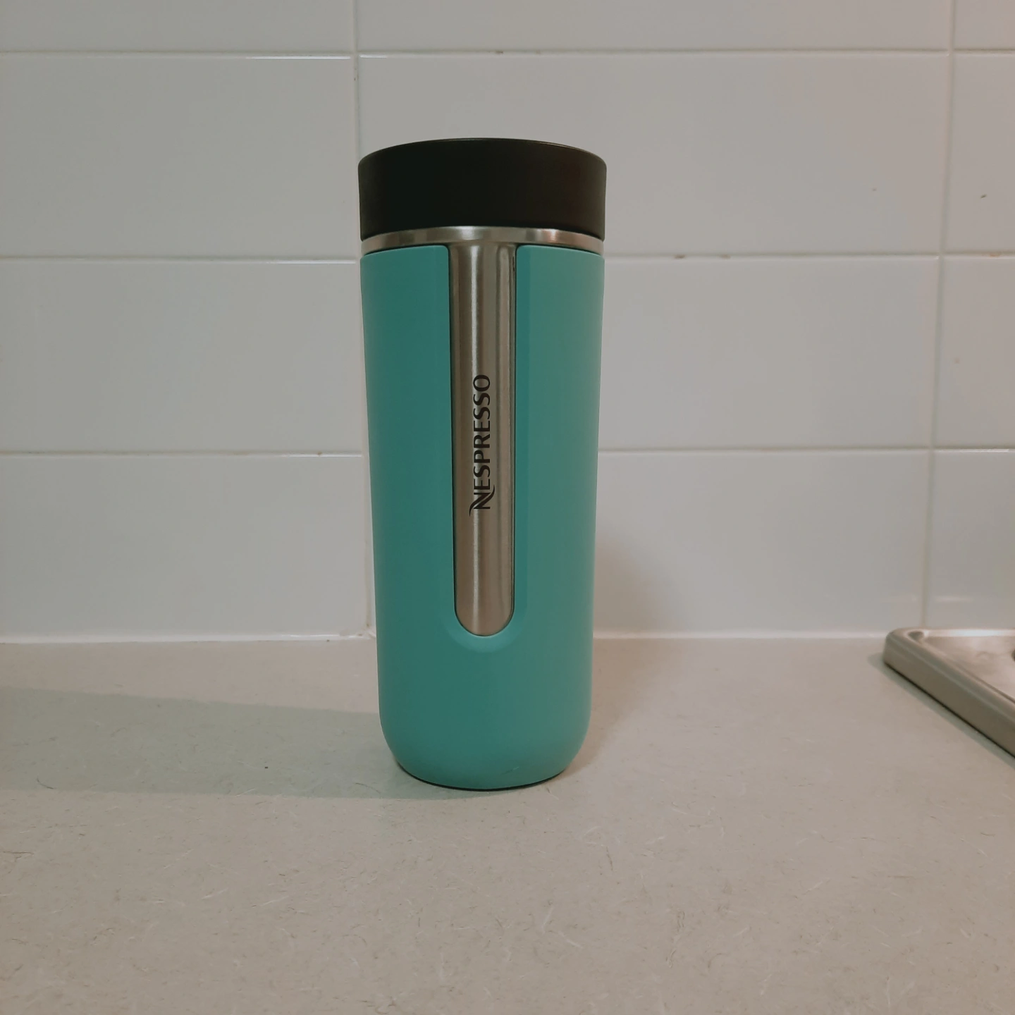 Nespresso Large Travel Mug NOMAD COLLECTION - vibrant turquoise colour - push lid: open/close - 540 ml / 18 fluid ounces selling because I'm having troubles with my hands and gripping things, it's a bit big which is too bad-- it's a really nice travel mug