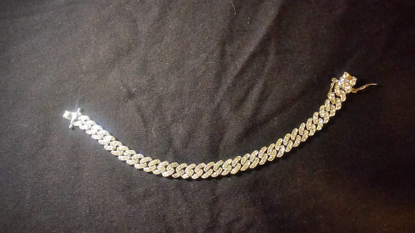 Men's iced out cuban link bracelet. . Secure clasp closure. Perfect for adding some bling to your style.