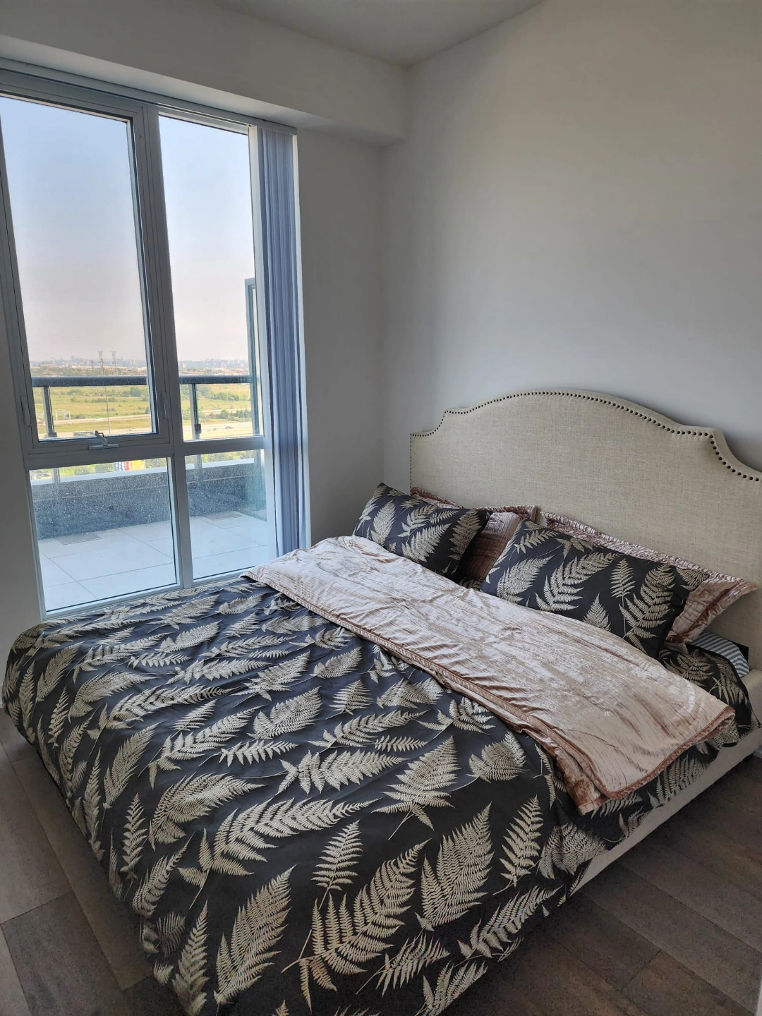 King size bedding set. Fern print duvet cover and four pillowcases. Rose gold velvet throw blanket. Excellent condition, only used for staging. comes with gold blanket. bought from quilts store in Vaughan Mills.