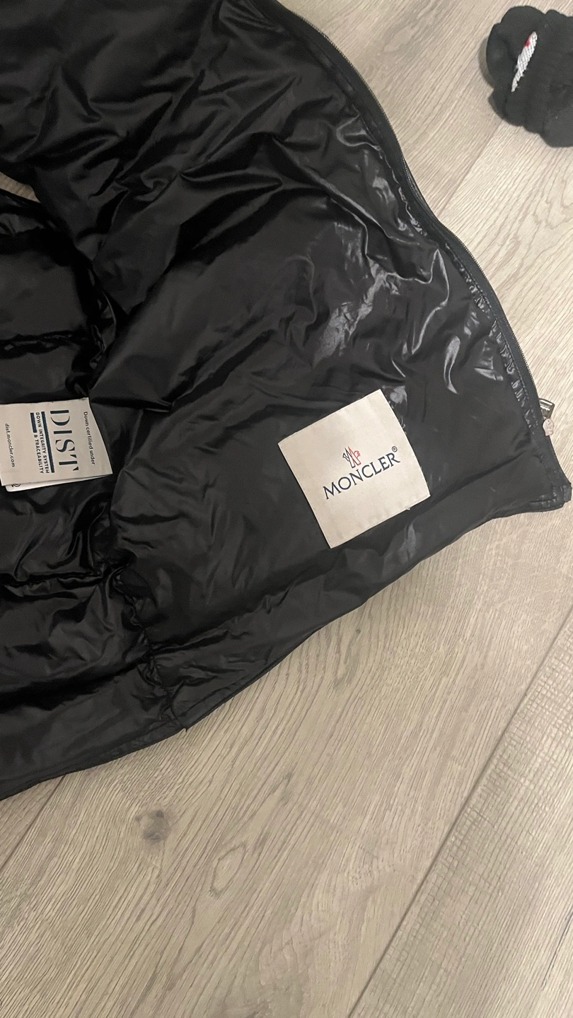 Black Moncler puffer vest. Longue Saison. Zipper closure. Multiple pockets. Good condition.